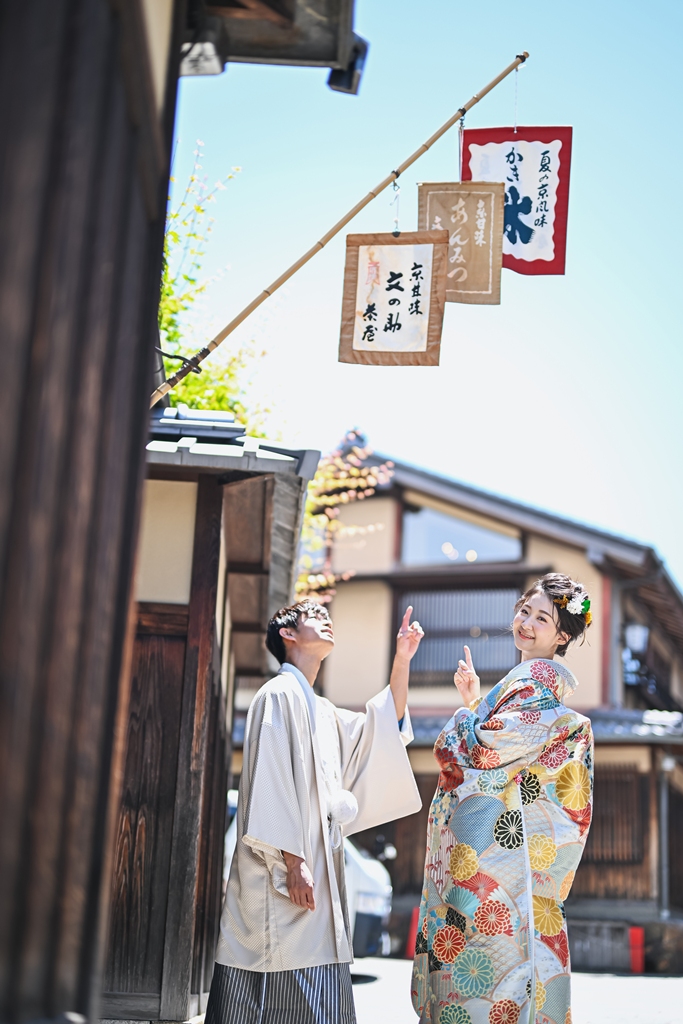 とびきり明るい朱に眩しさを感じるような王道カラーの色打掛。未来を明るく灯す、そんなパワーを秘めた着物は、お2人の新たな門出にはぴったりです。