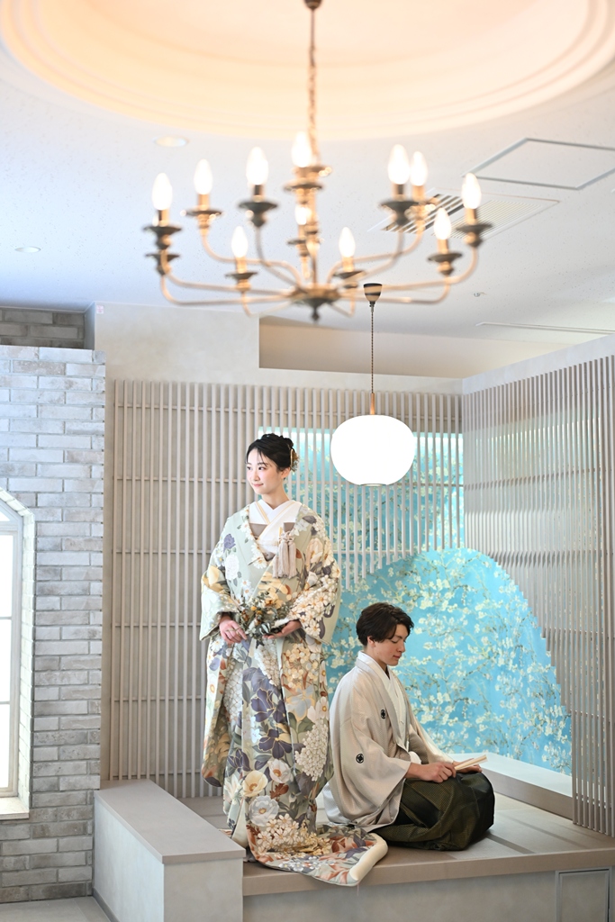 もちろん和装といったらの畳のお部屋や正座のお写真もしっかり撮影いただけるようになっておりますのでご安心ください。