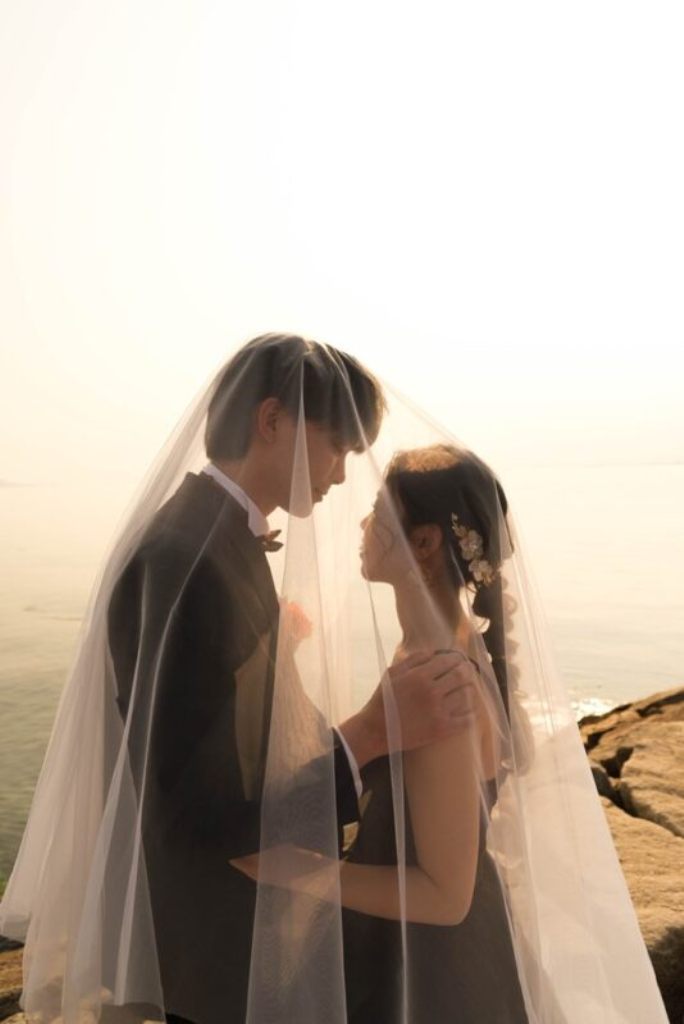 モノトーンのコントラストが際立つスタイル。シンプルながら洗練された印象で、結婚写真にアート性をプラス。