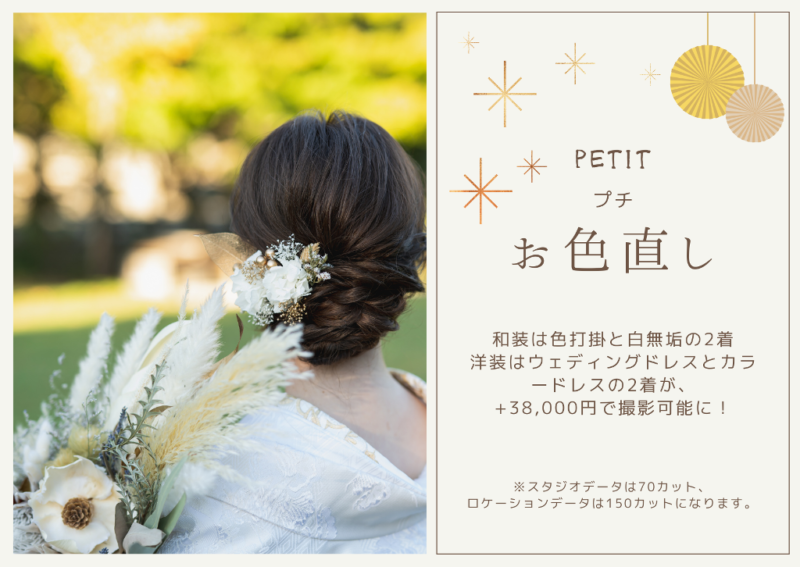 洋装と和装の2着を撮影する方にお得な3つの組合せプランをご用意!