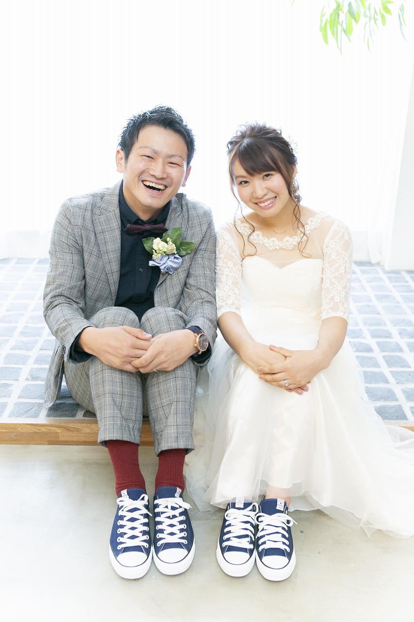 お揃いの青いスニーカーがとてもかわいかったです♡