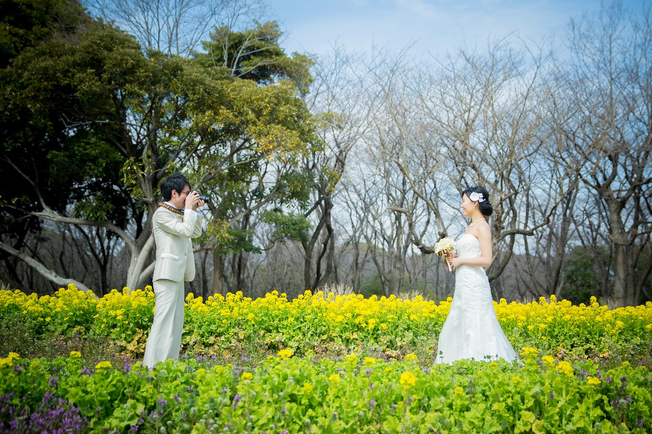 菜の花と一緒にウェディングフォト撮影♡