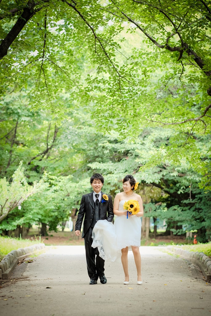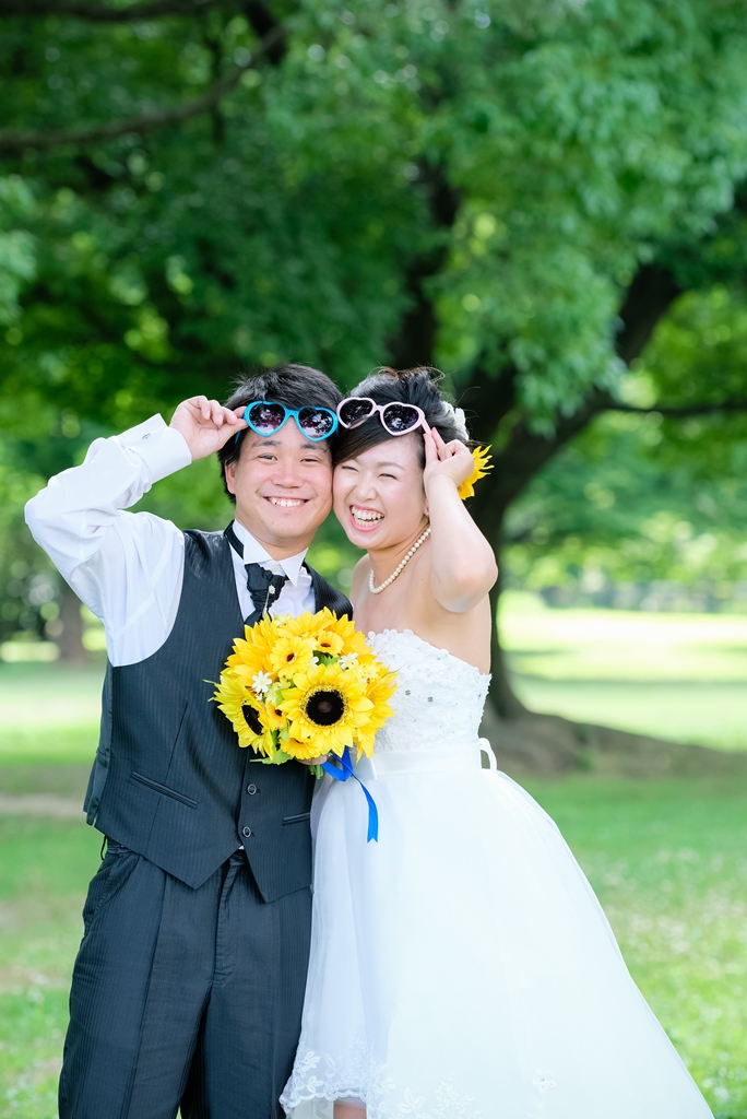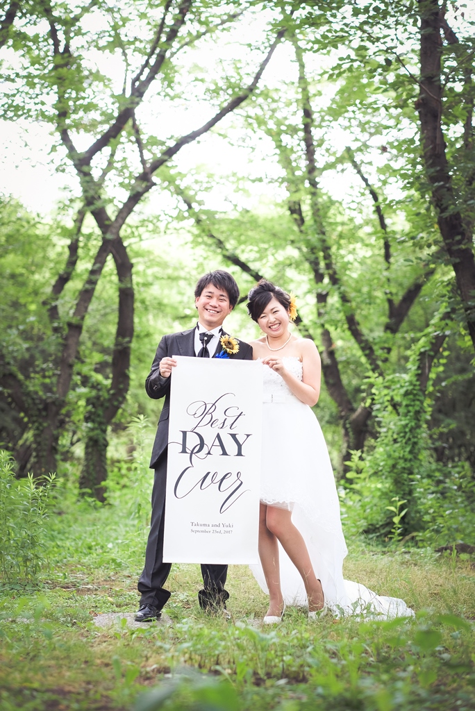 結婚式の準備も見越した撮影アイテムや、こだわりのひまわりアイテム