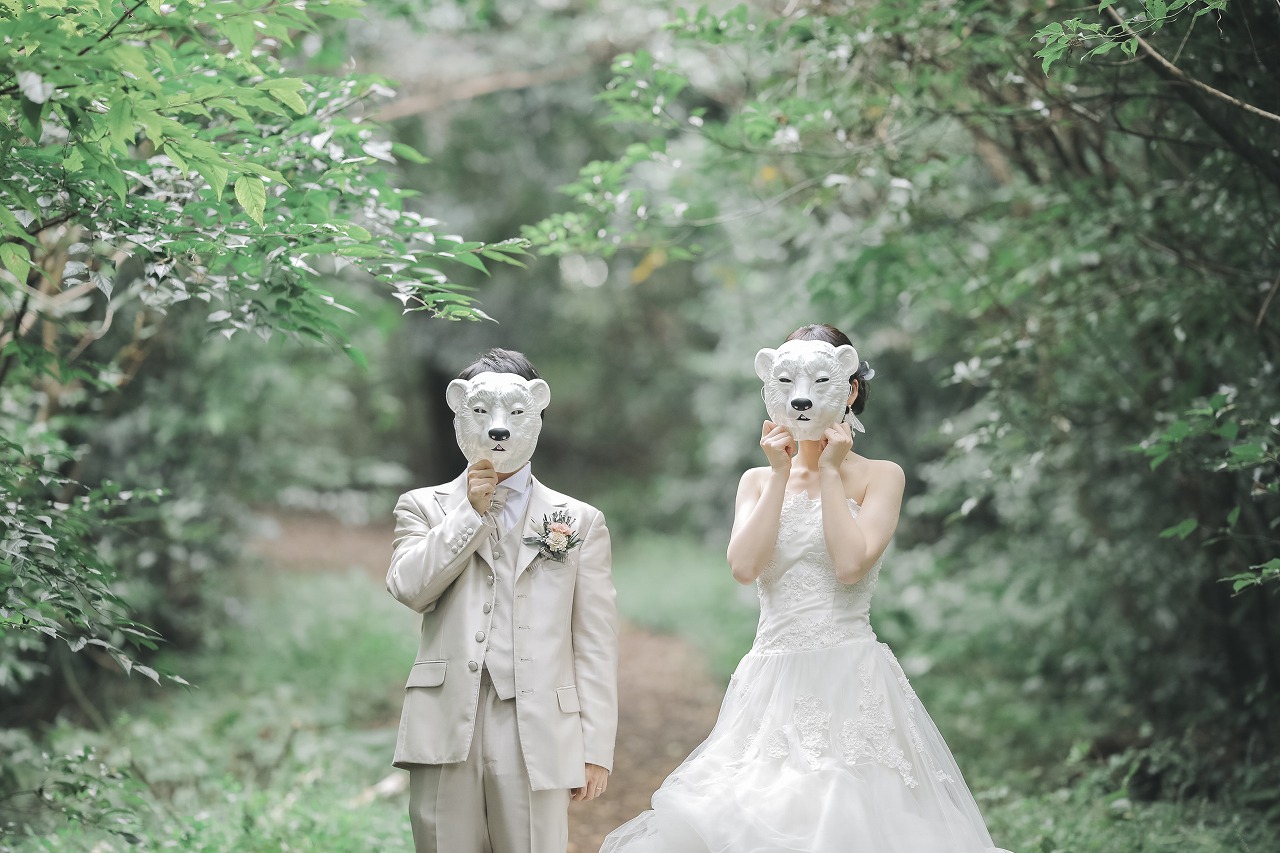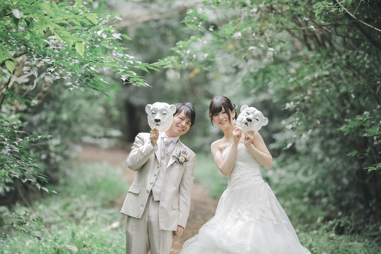お二人の小さい時のお写真や しろくまのお面、本を使った演出の撮影で