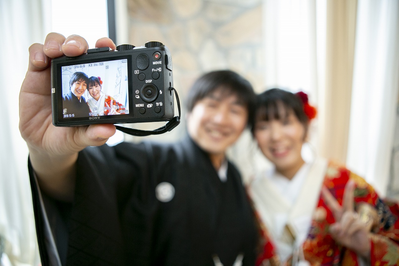 カメラをお持ちいただいて カメラの画面越しに写るお二人もとっても素敵で