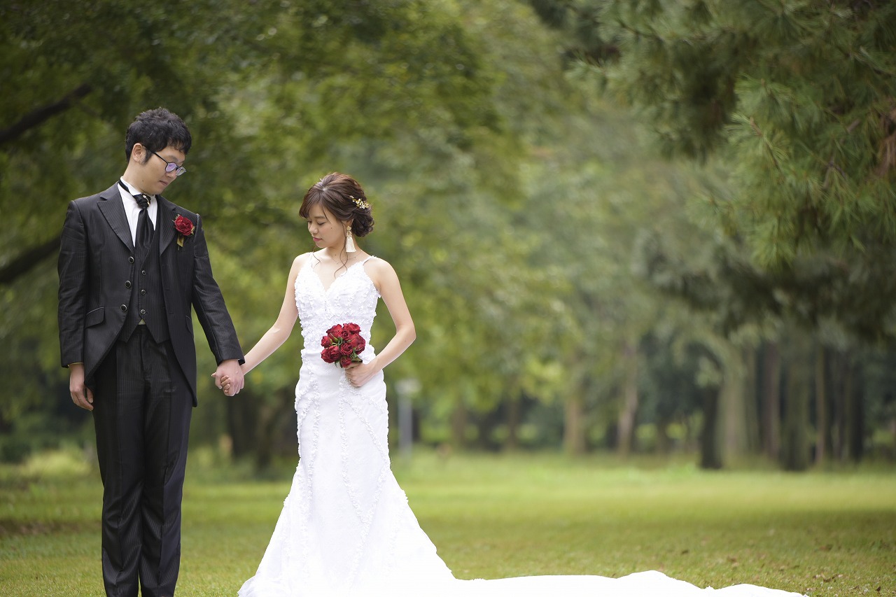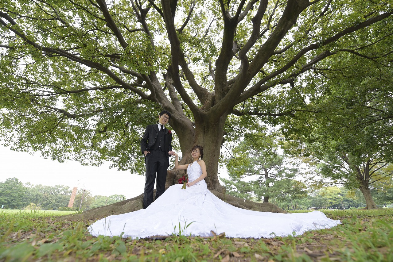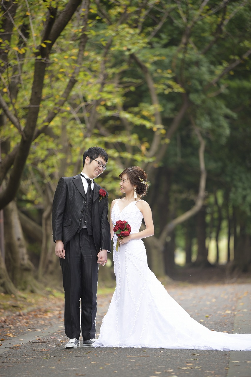 大人気の洋装ロケ「庄内緑地公園」で前撮り撮影をしていただきました。