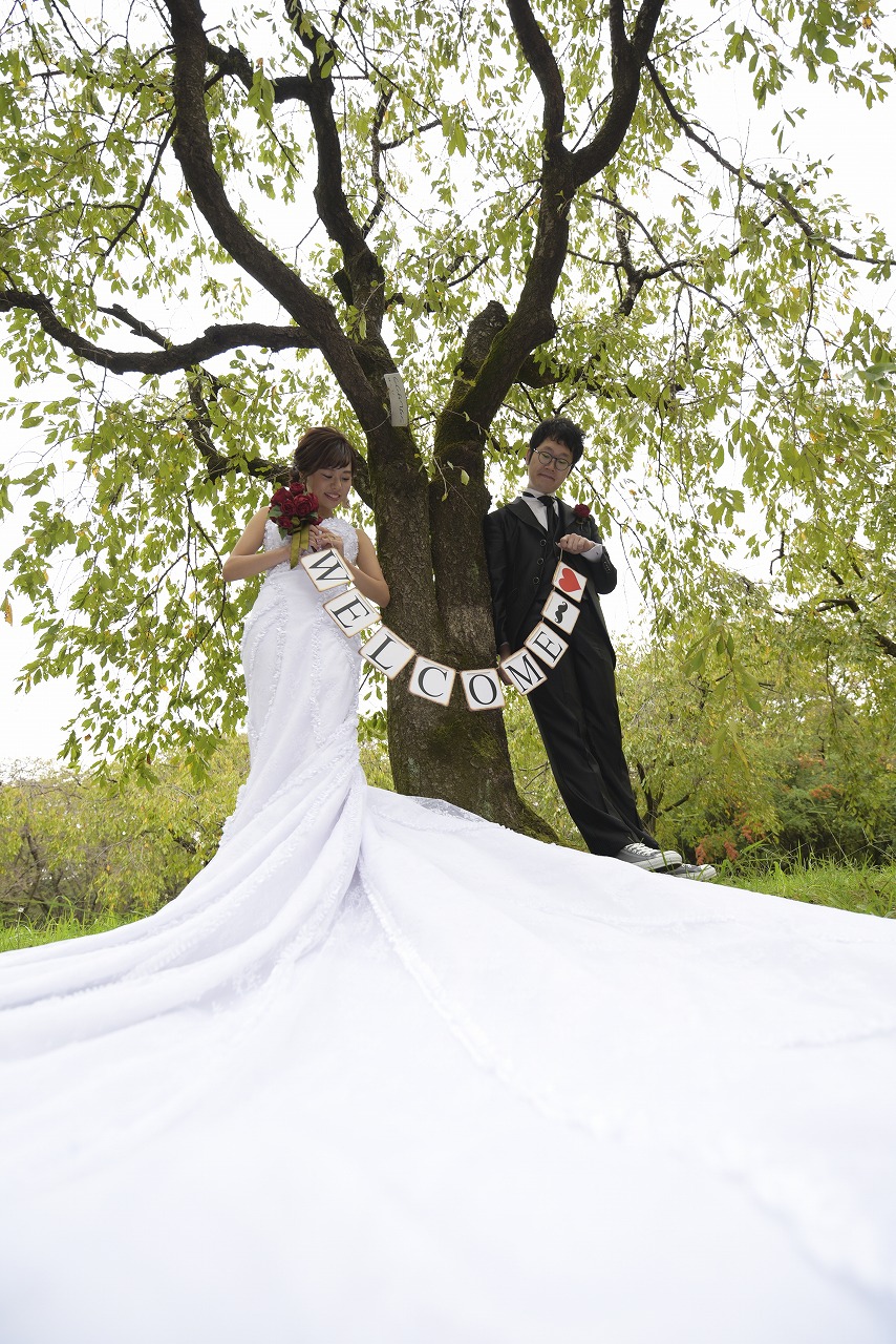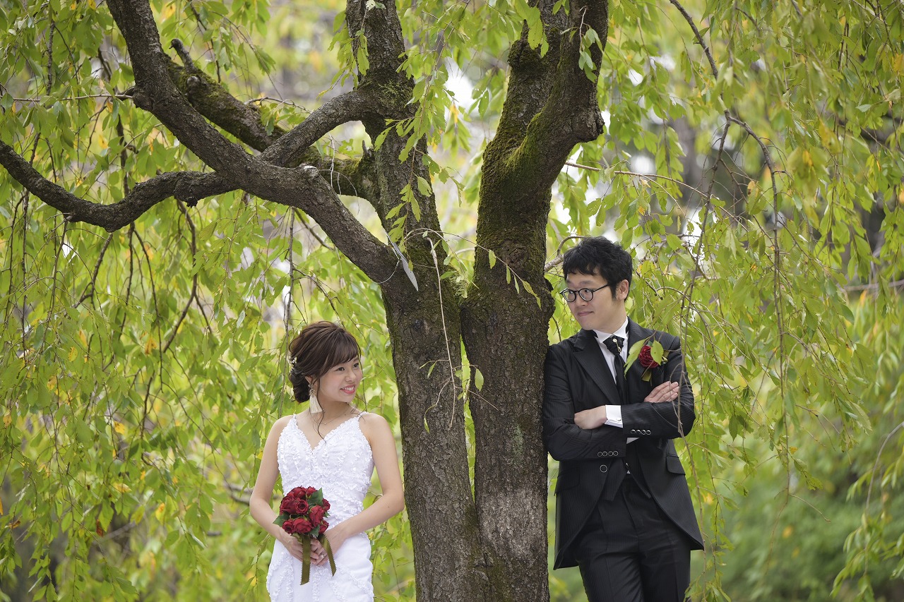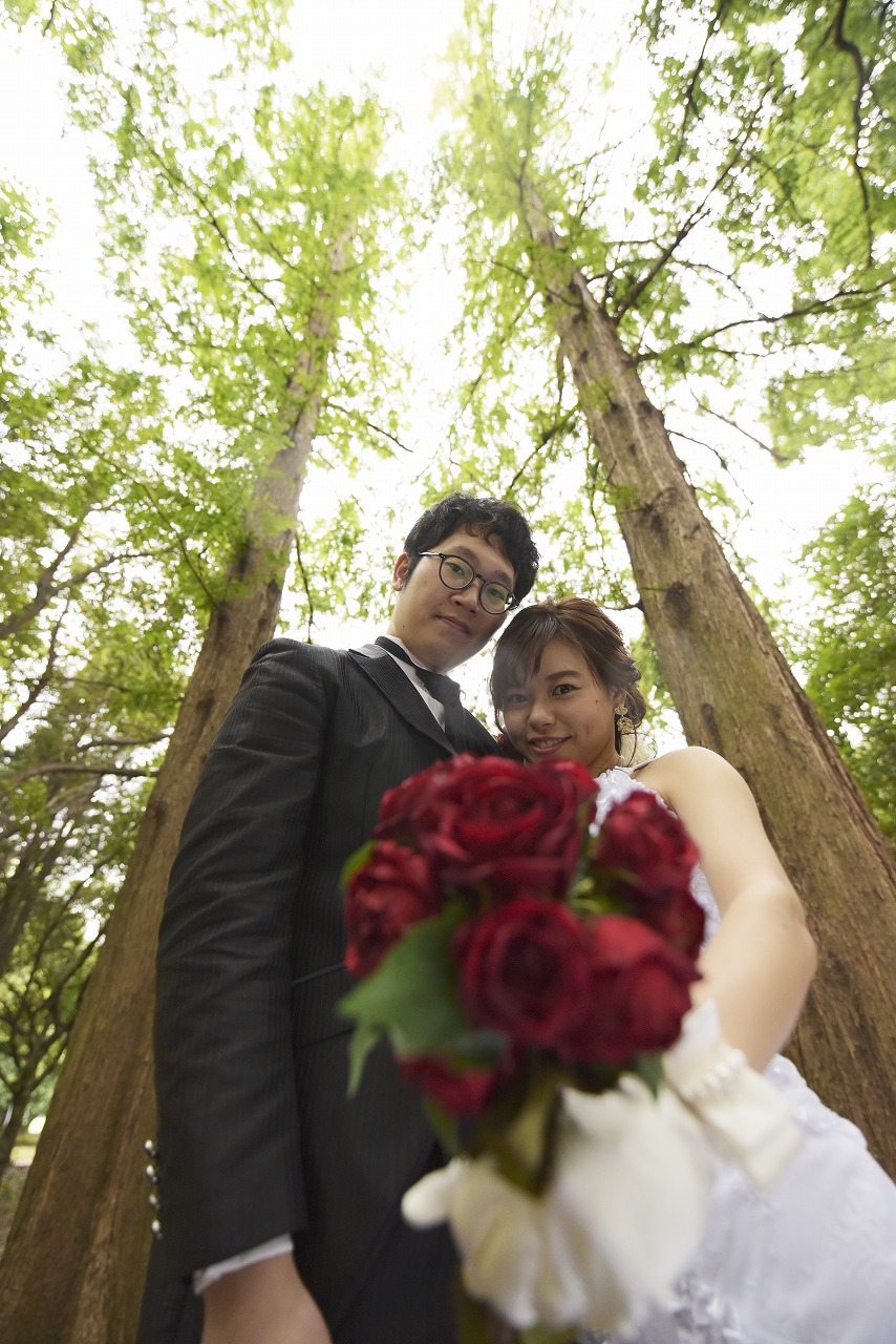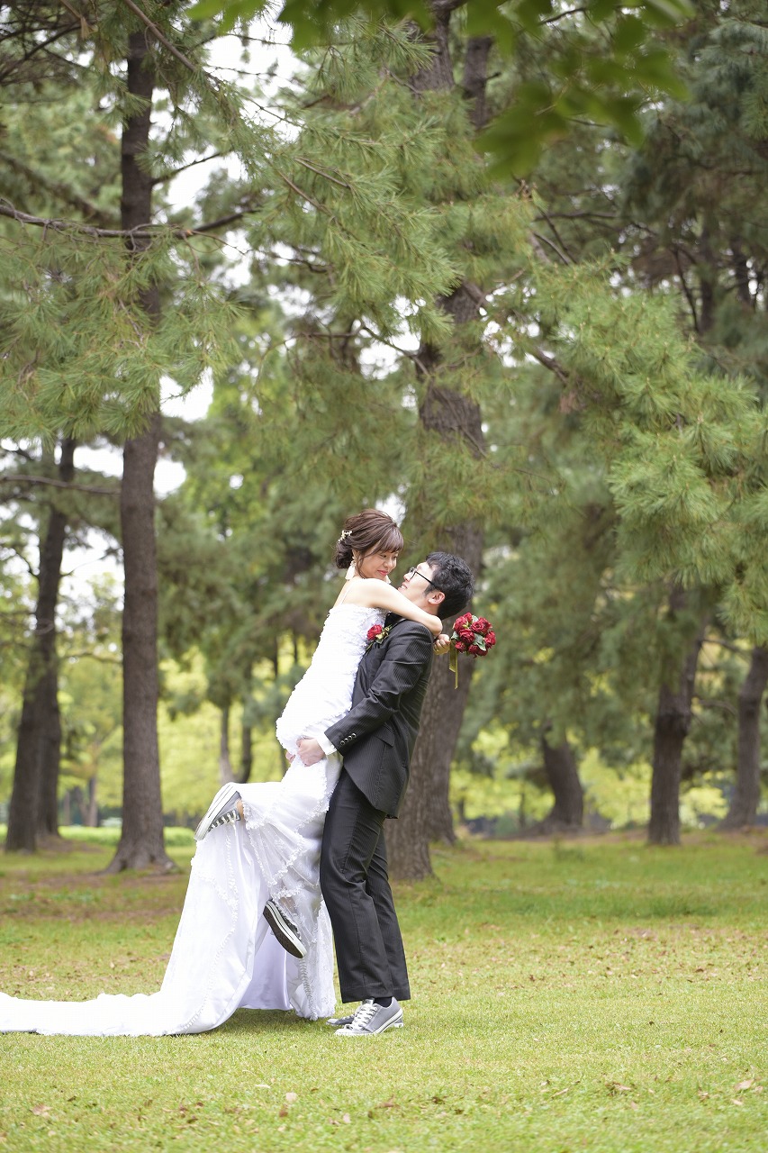大人気の洋装ロケ「庄内緑地公園」で前撮り撮影をしていただきました。