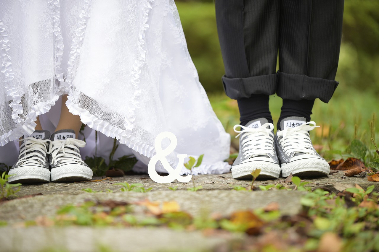 お揃いのスニーカーでのお写真や婚約指輪のショットなどお二人らしさをめいっぱい