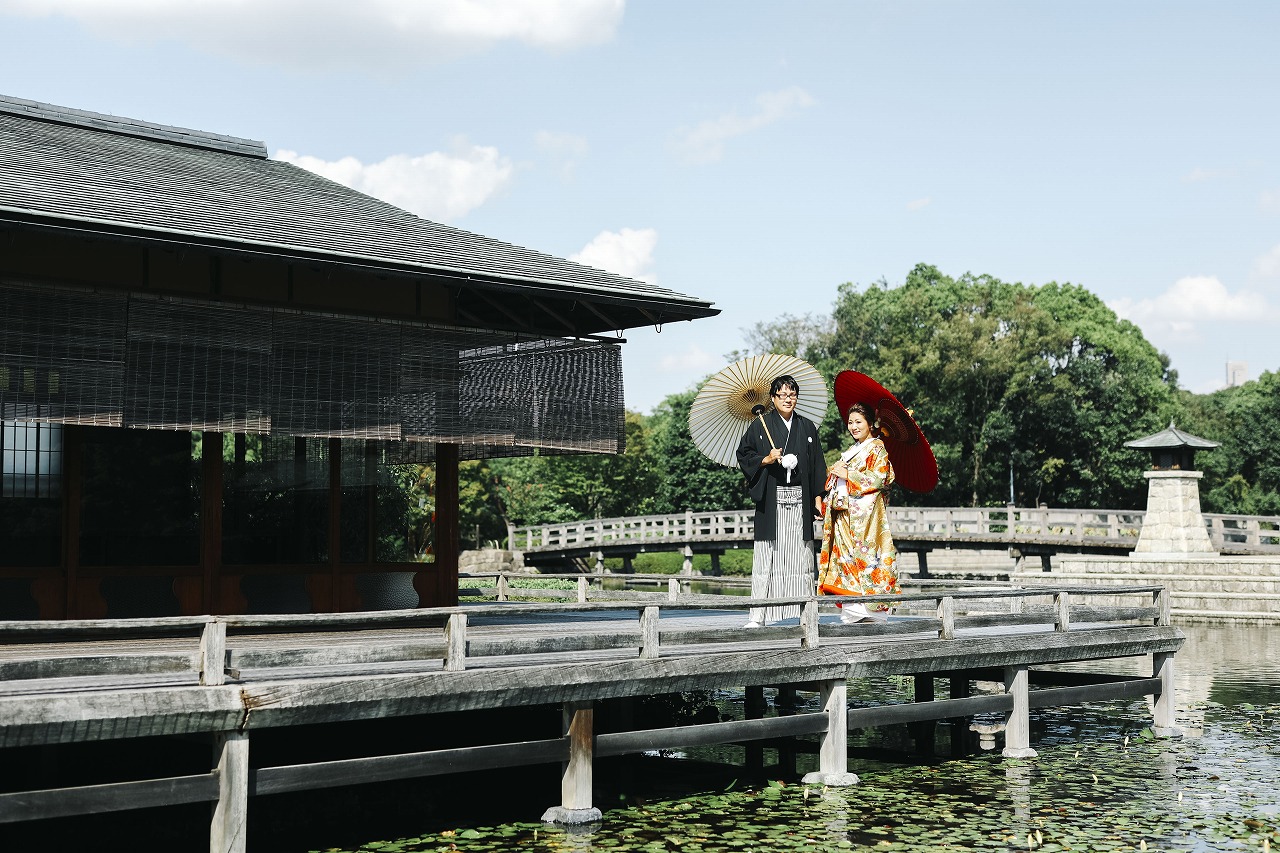 《白鳥庭園 Shirotori Japanese Garden》スカイロケーション洋装撮影