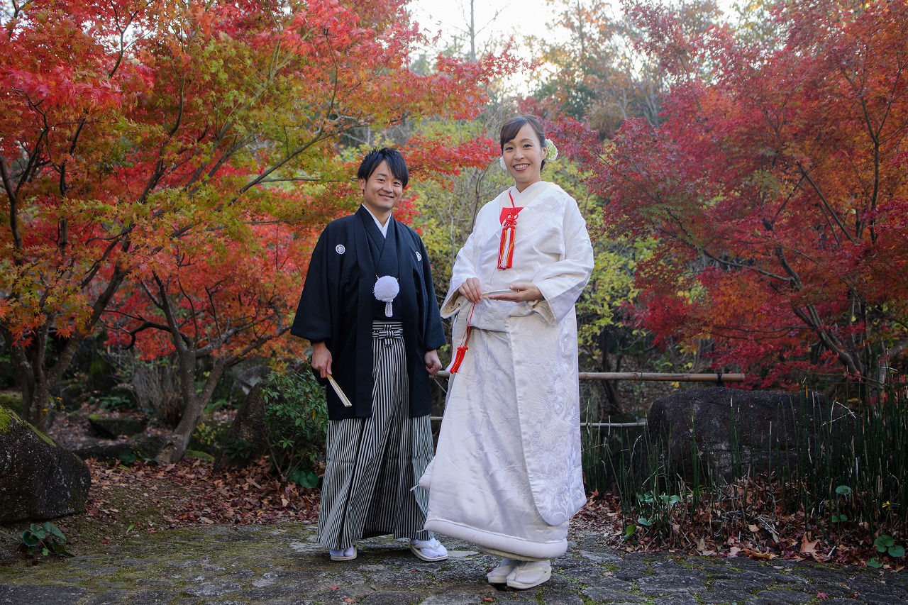 ザ・スカイウェディングでの撮影をご利用頂きありがとうございました!!紅葉に映える白無垢姿と黒の紋付がとてもよくお似合いでしたね♡