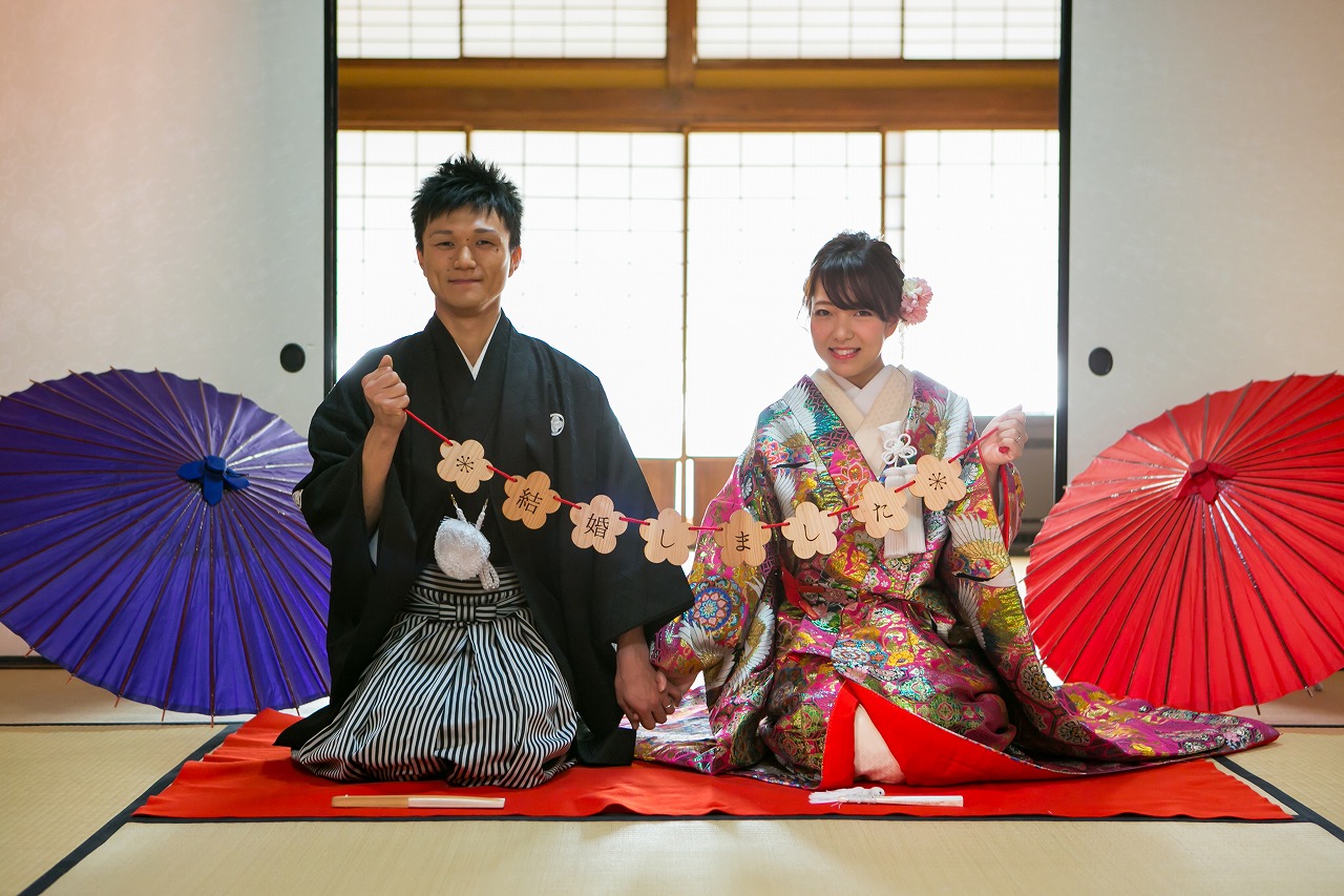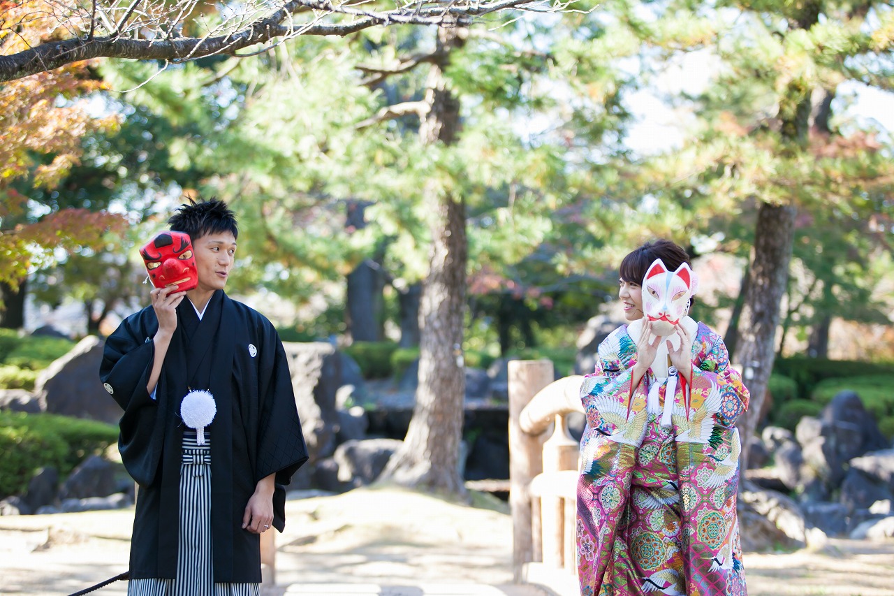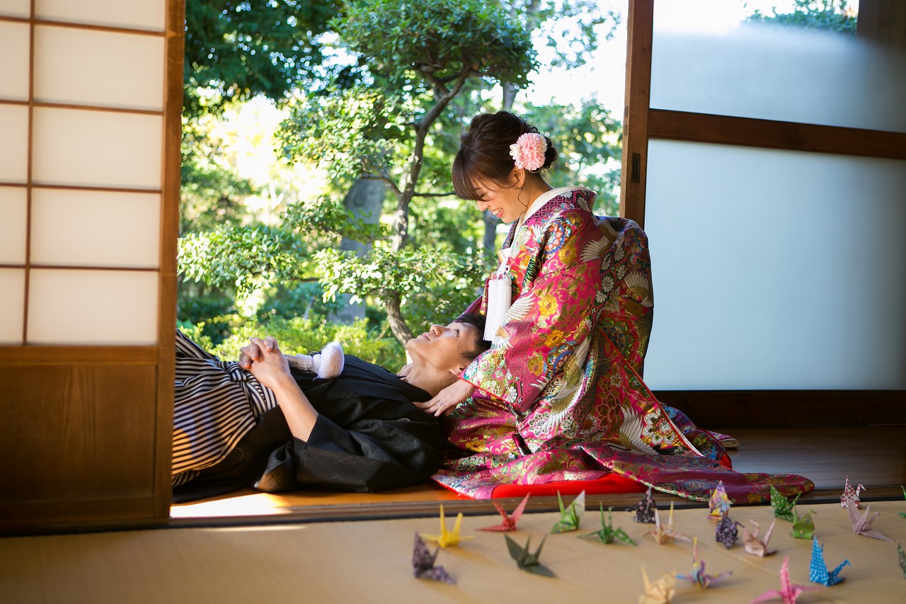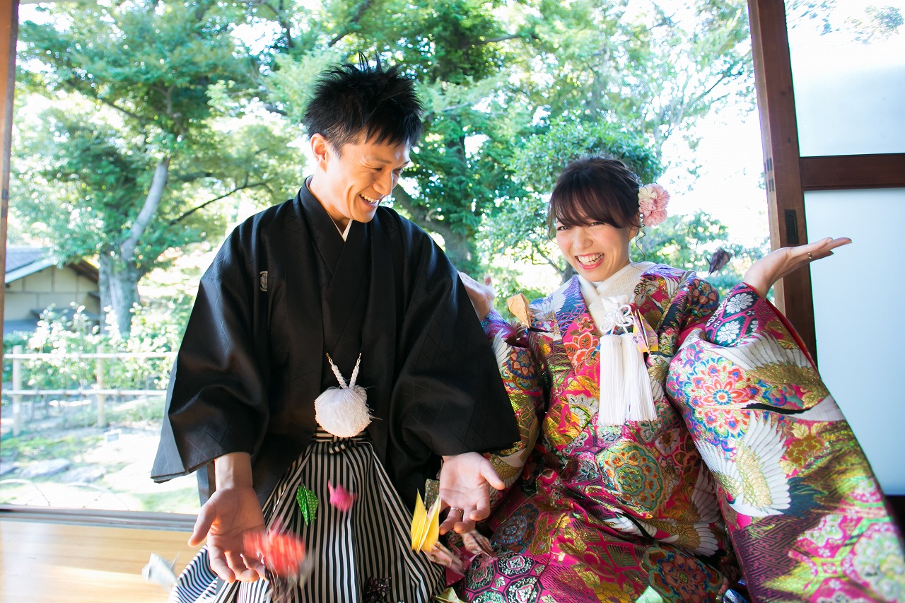 スカイロケーションフォト 和装前撮り撮影 <色打掛&紋服> 中村桐蔭茶席&記念館