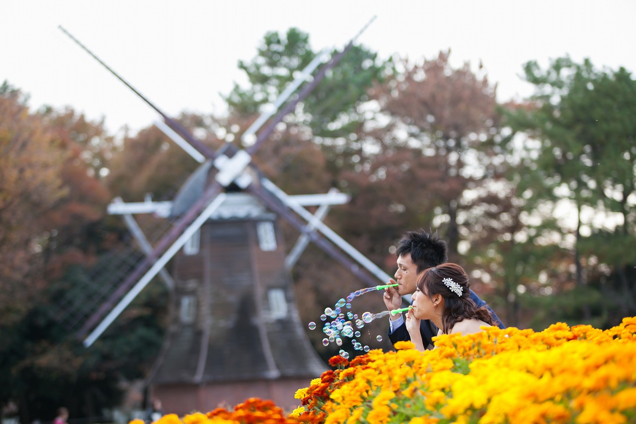 風車や芝生といった名城公園らしいロケーションで撮影できました。