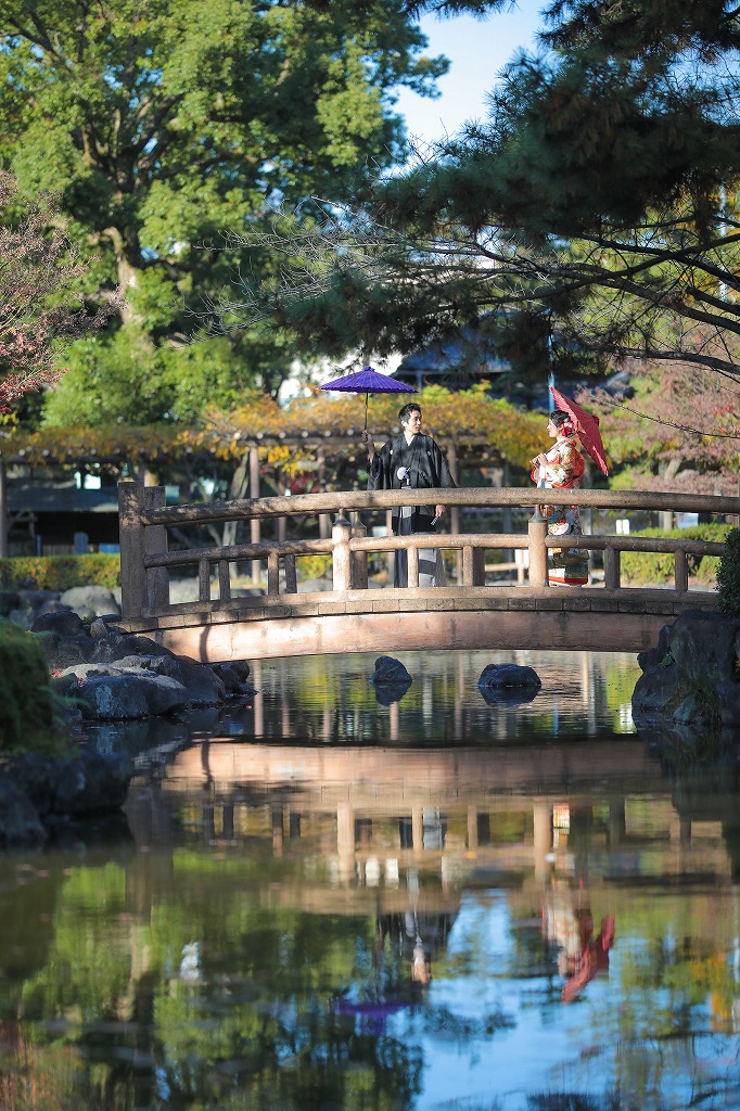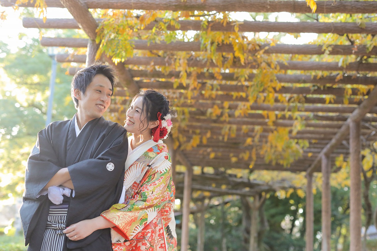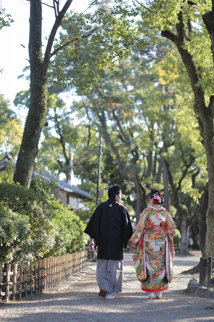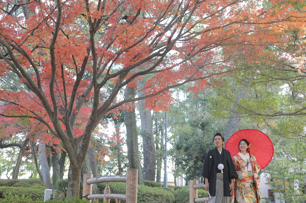 庭園に映える色打掛、新婦様にもとてもお似合いでした!