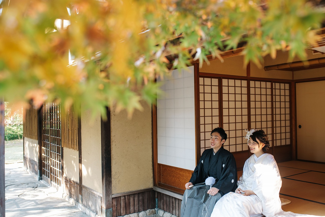 中村公園の桐蔭茶席で和装撮影をされたおふたり。