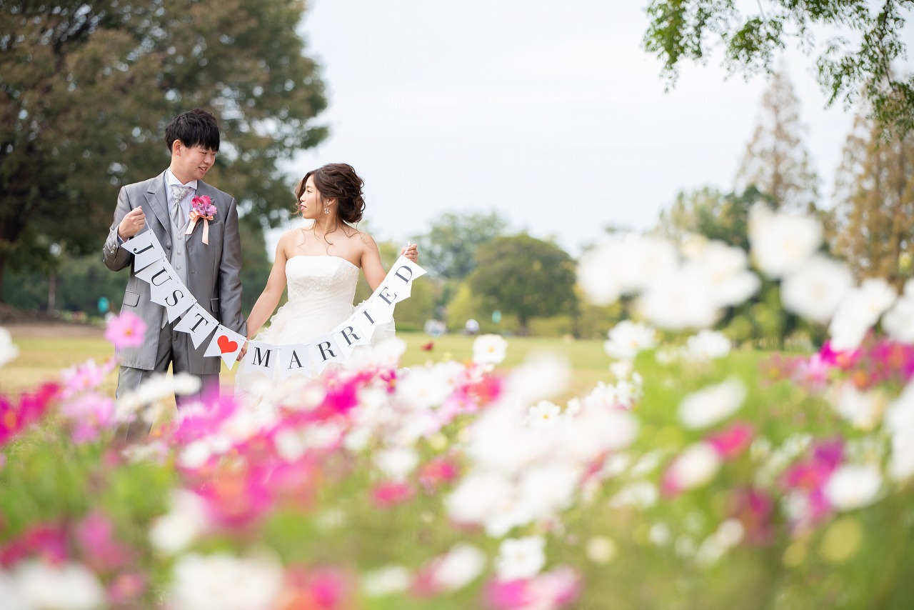 コスモスもキレイで良かったです。笑顔いっぱいの撮影をありがとうございました(^^)末永くお幸せになって下さい。