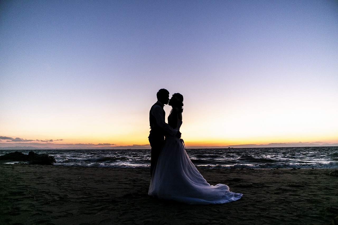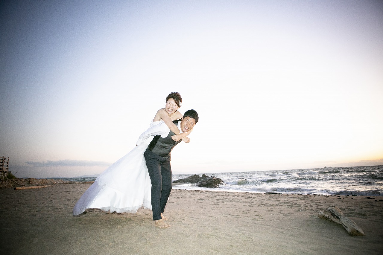 浜辺を散歩しながらサンセット撮影!ロマンチックな結婚式前撮り♡