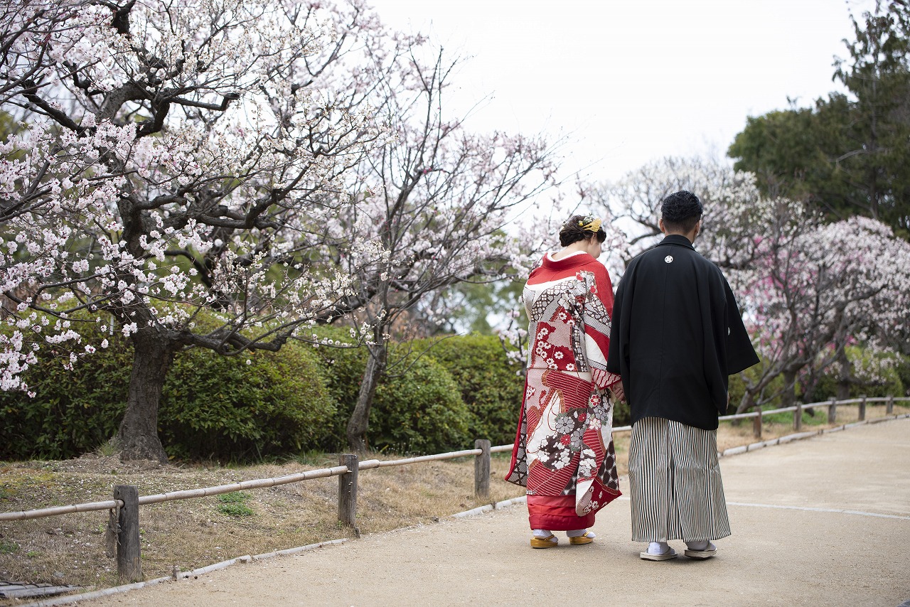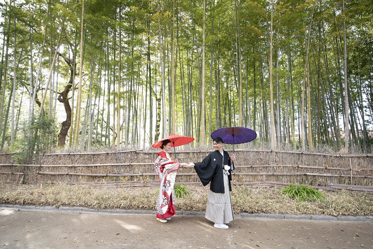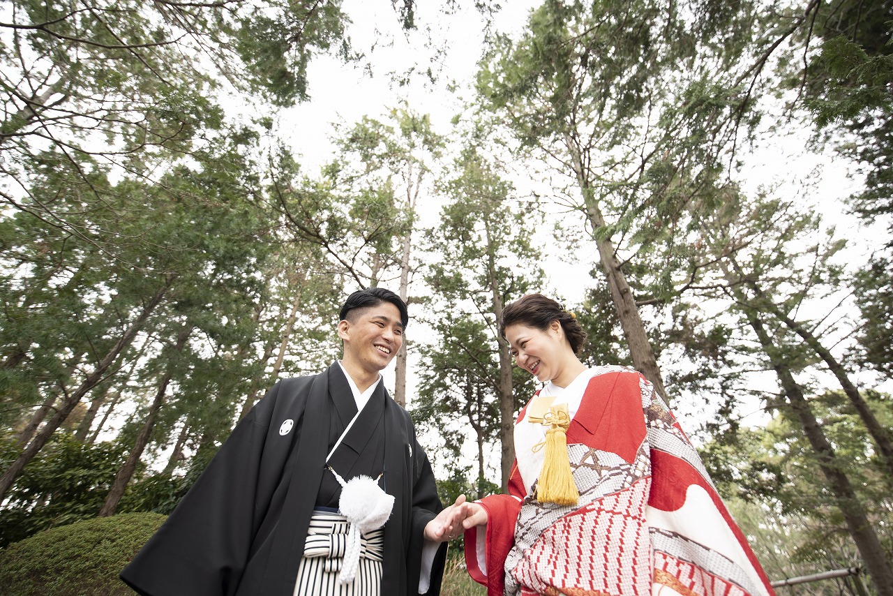 季節感じる白鳥庭園で和装ウェディングフォト撮影♡