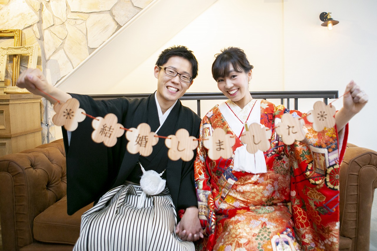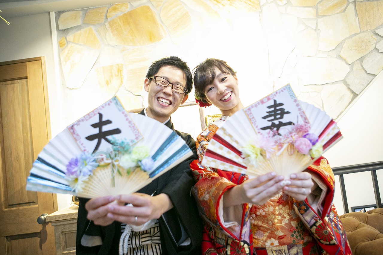 リビングスタジオで色打掛と白無垢で…笑顔いっぱいに撮影をしていただきました。