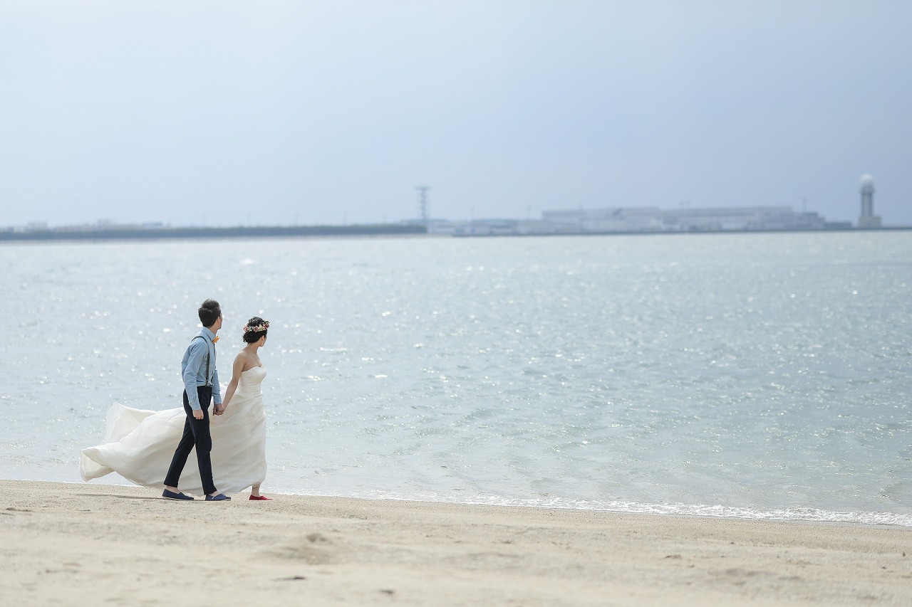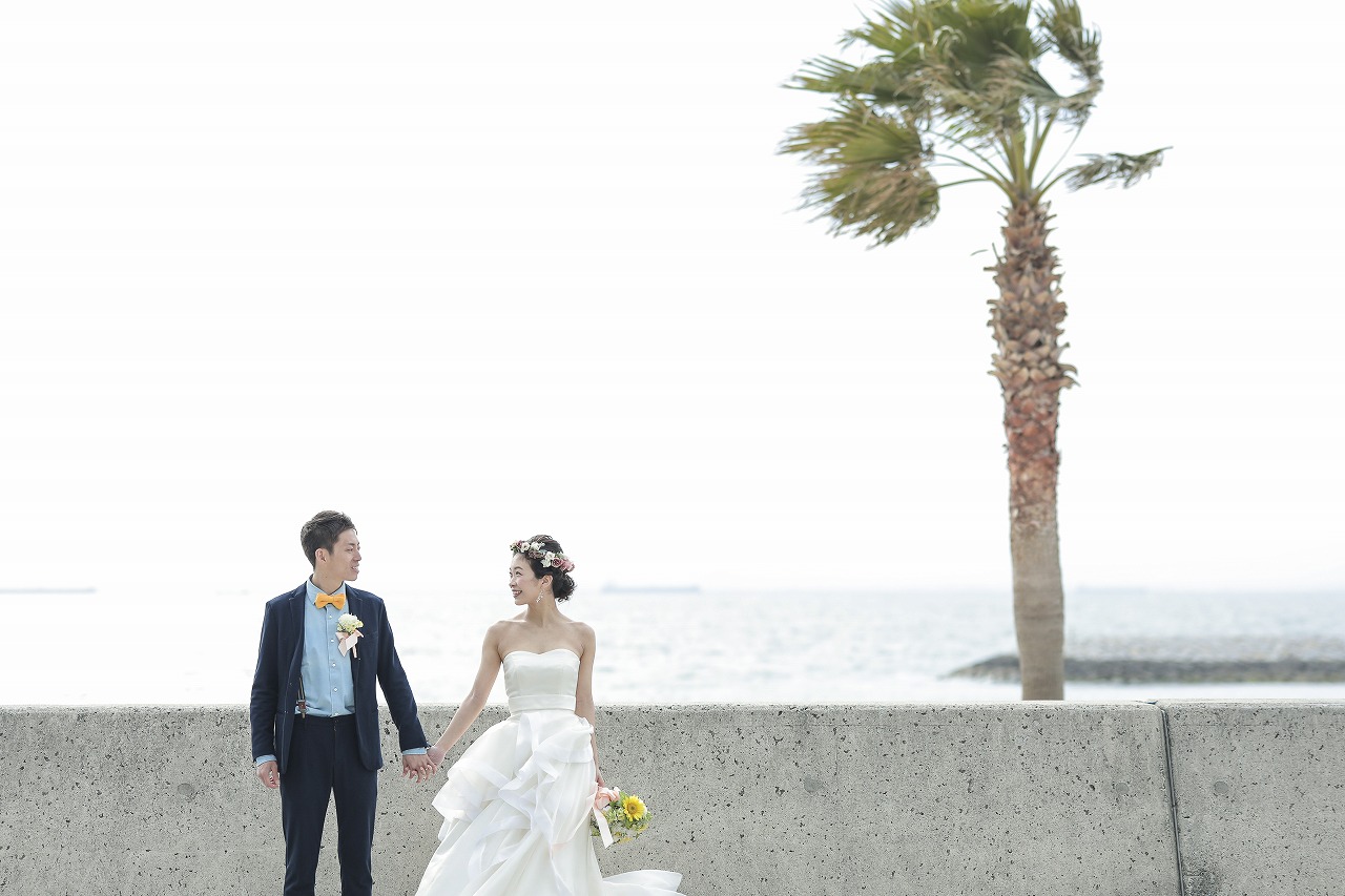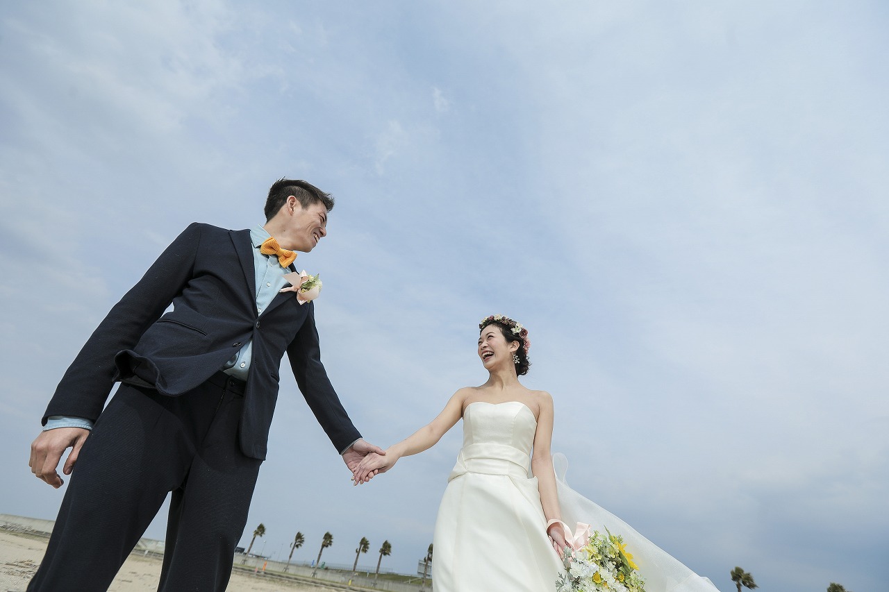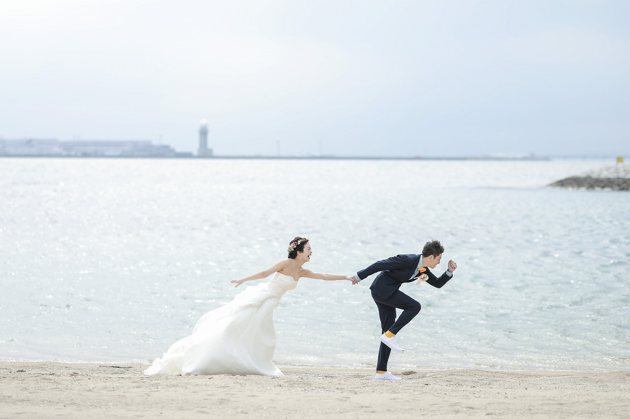 りんくうビーチで遊び心満点な前撮り撮影♡