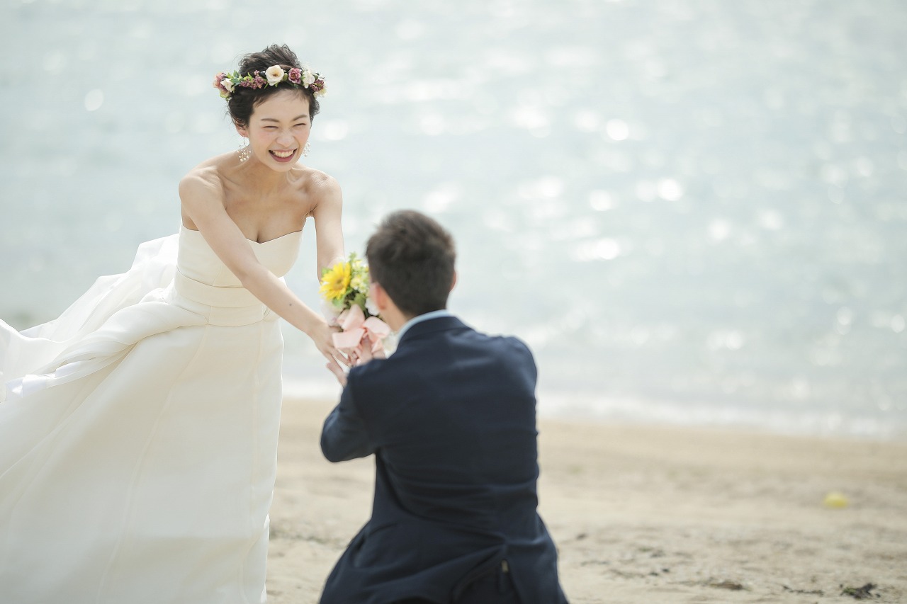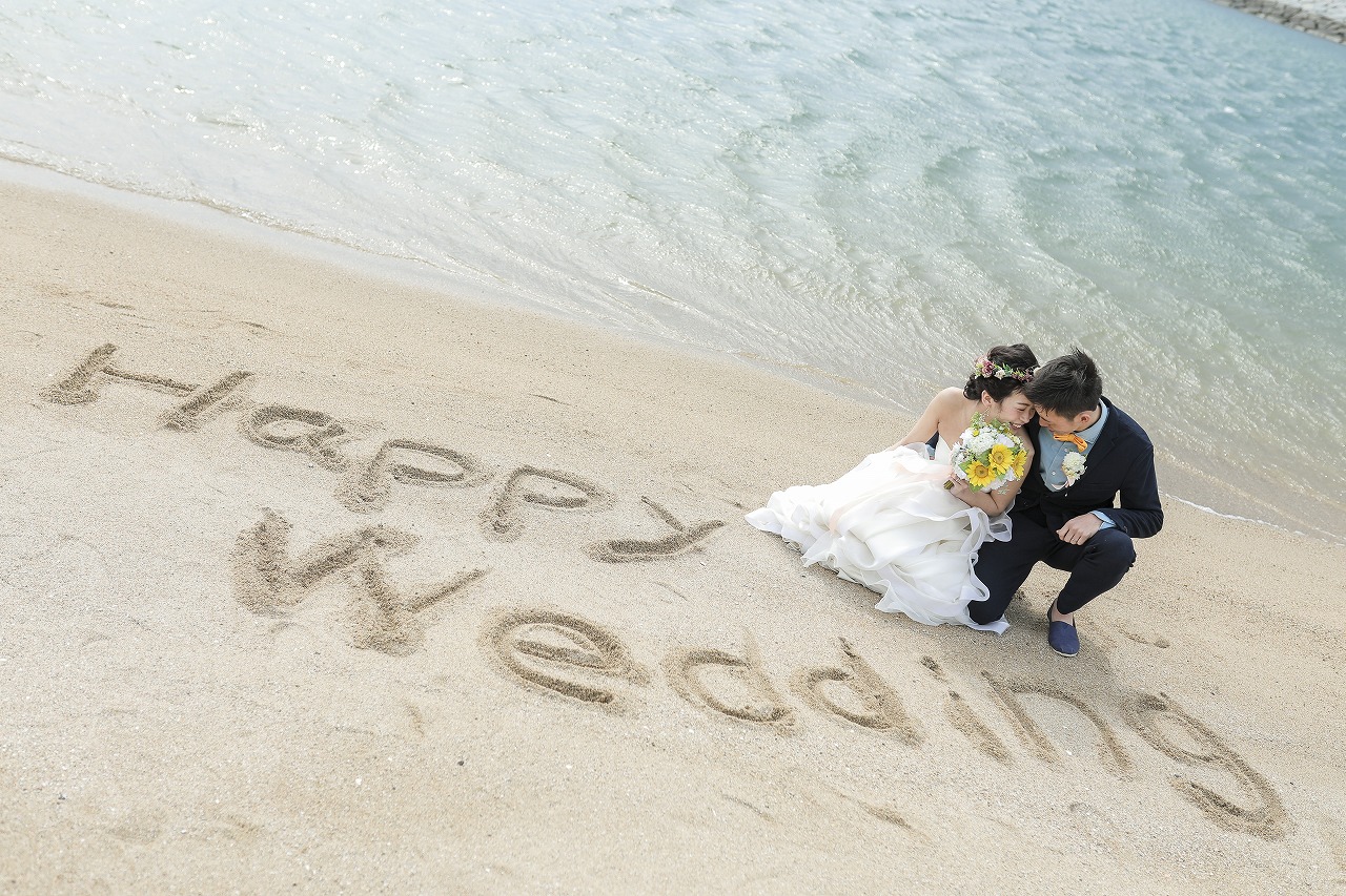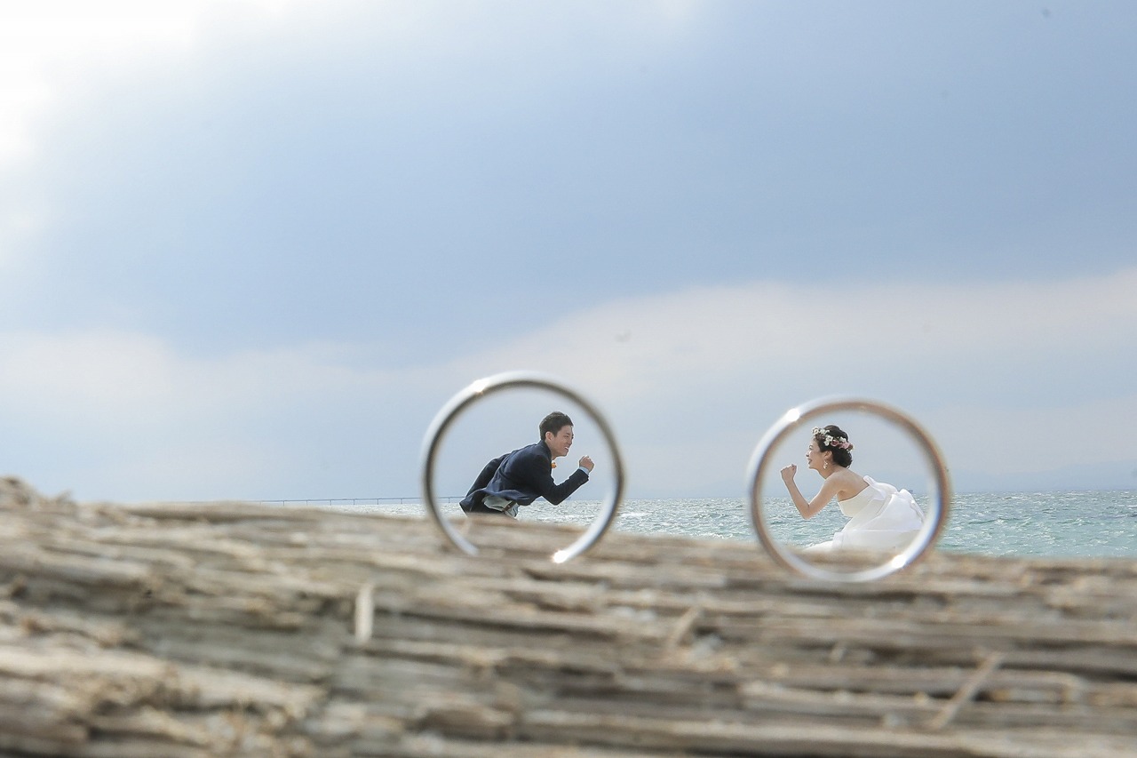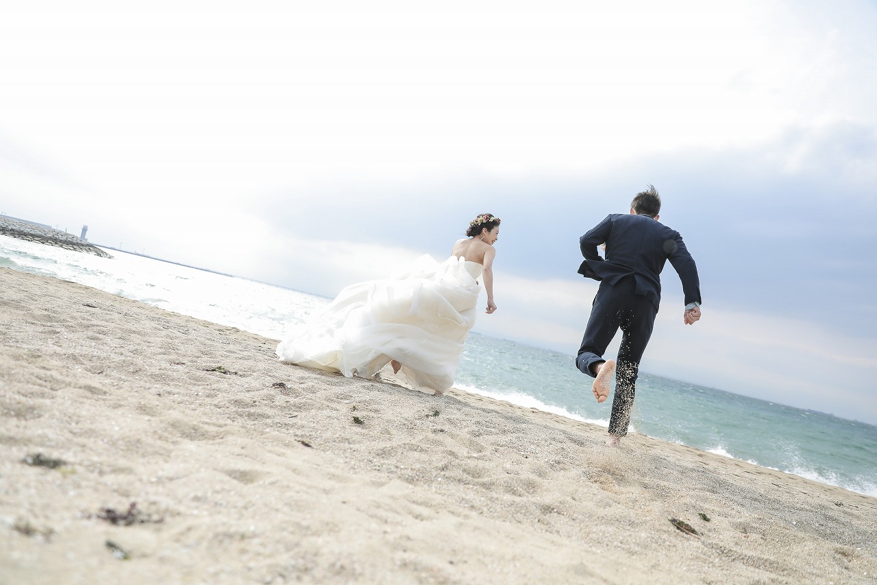 りんくうビーチで遊び心満点な前撮り撮影♡
