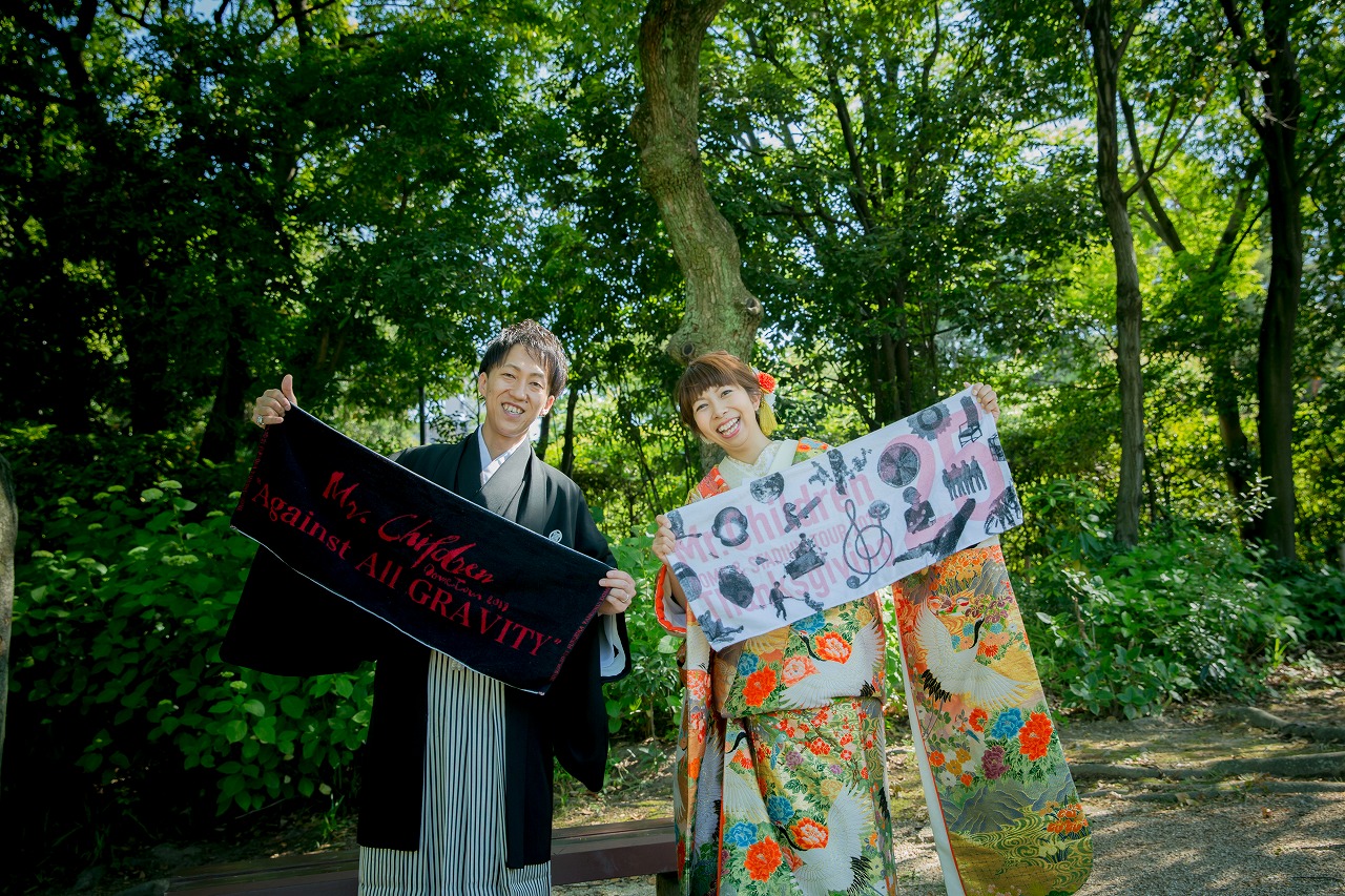 お二人のことを祝福しているようでした♪お二人が大好きなMr.Childrenのグッズを持った最高の1枚