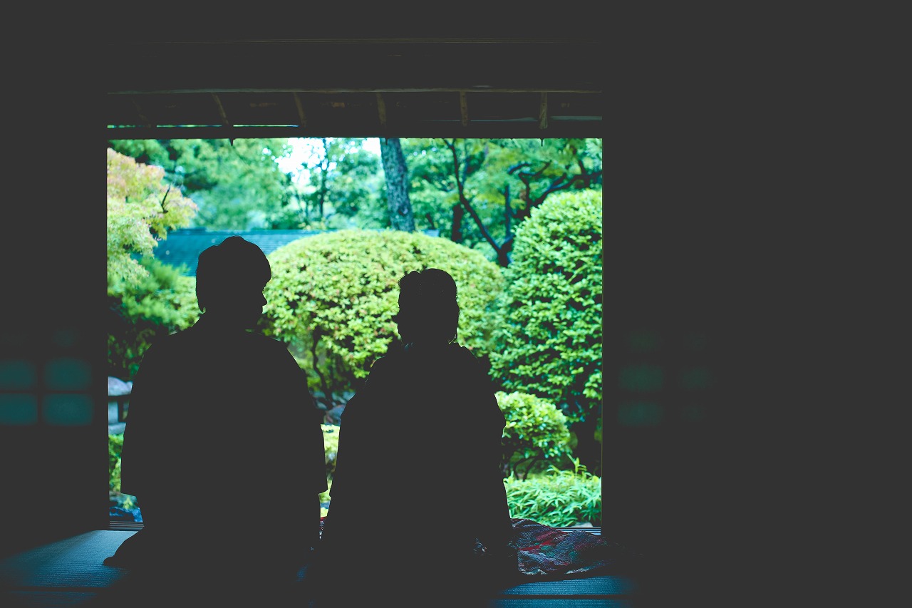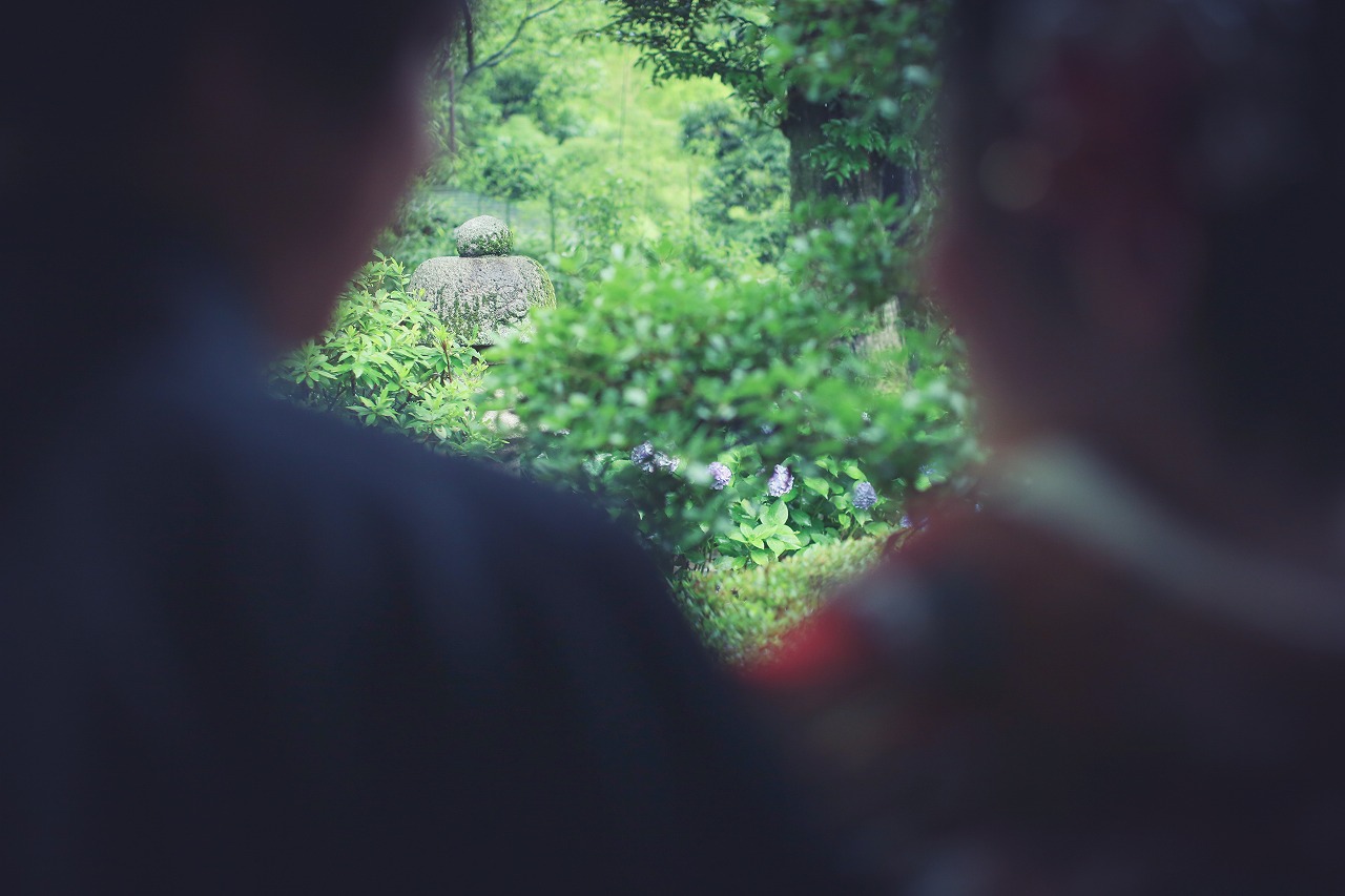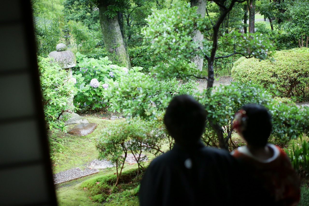 緑が美しく輝くお庭を眺めながらの撮影で