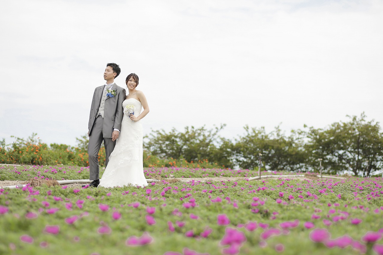 色とりどりの花がお二人のお写真をさらに彩ってくれました!元気いっぱいな笑顔がとっても可愛らしいご新郎新婦様♪