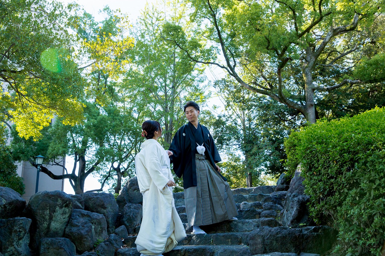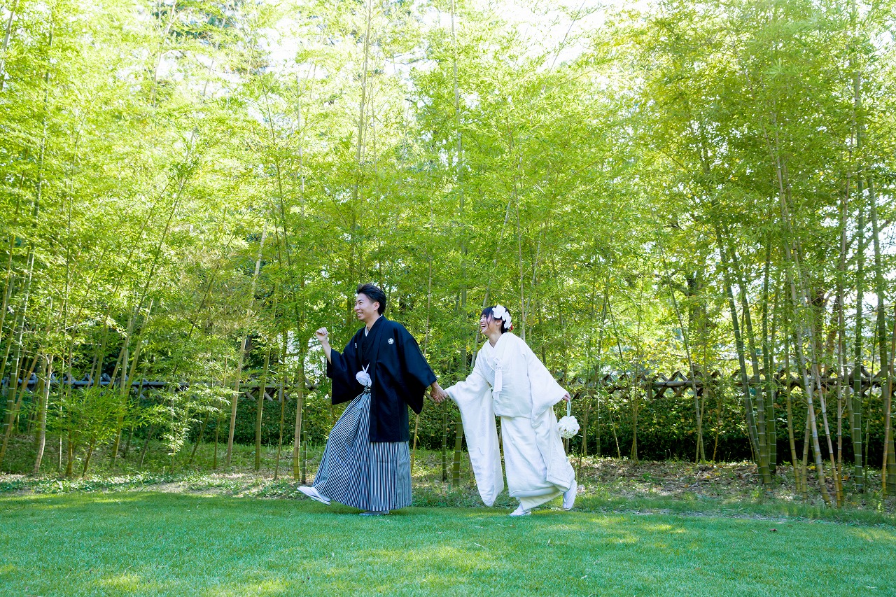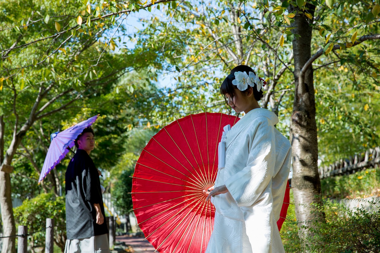太陽に見守られながら自然いっぱいの公園で和装前撮り