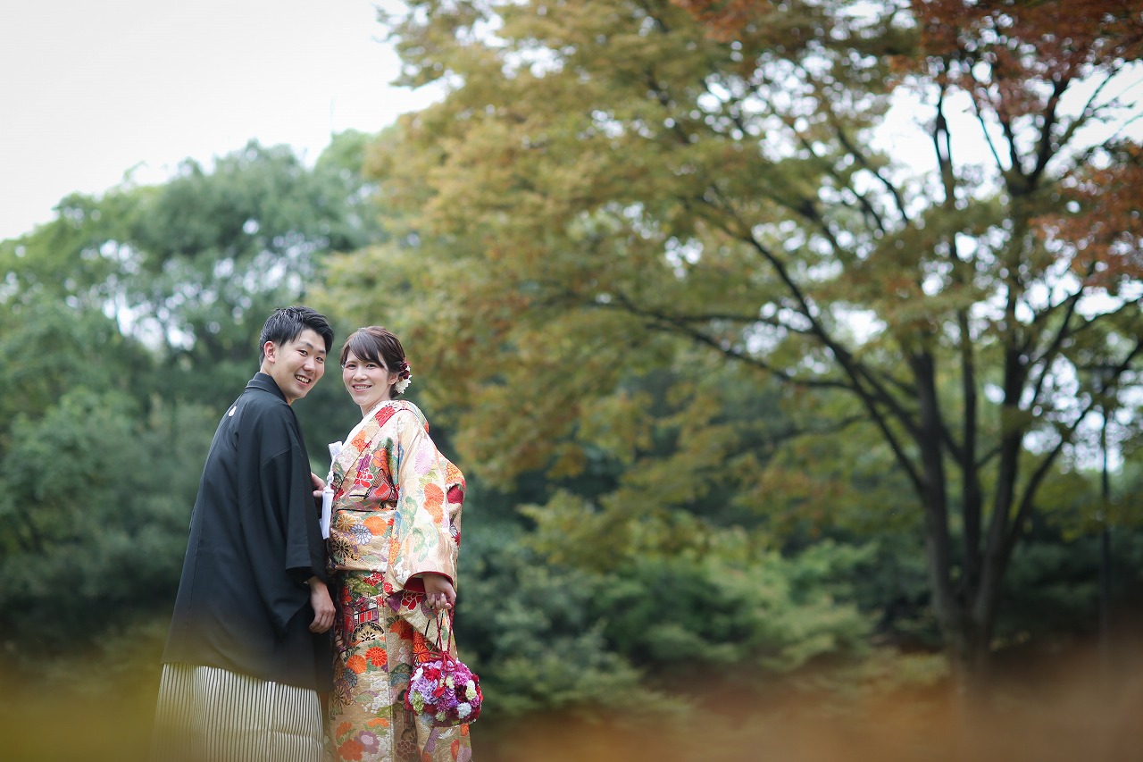 秋を感じる色鮮やかなお写真になりましたね♪お打ち合わせの時からとっても笑顔が素敵だったご新郎新婦様♡