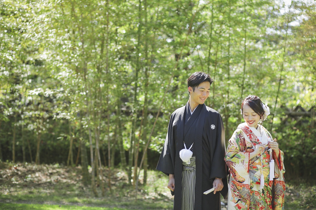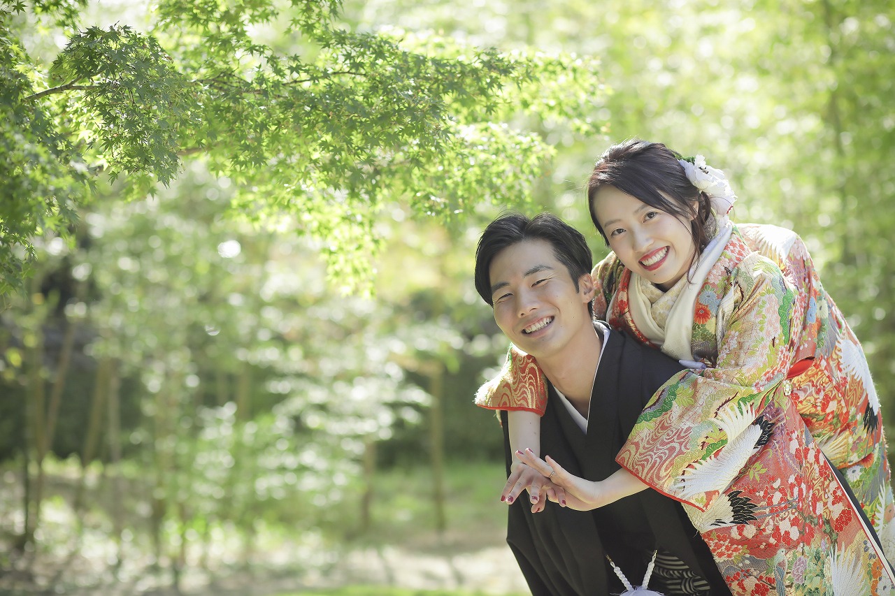 緑の葉が美しく揺れる中村公園での撮影。竹林の前で可愛くポーズをとるお二人がとっても可愛いです♡