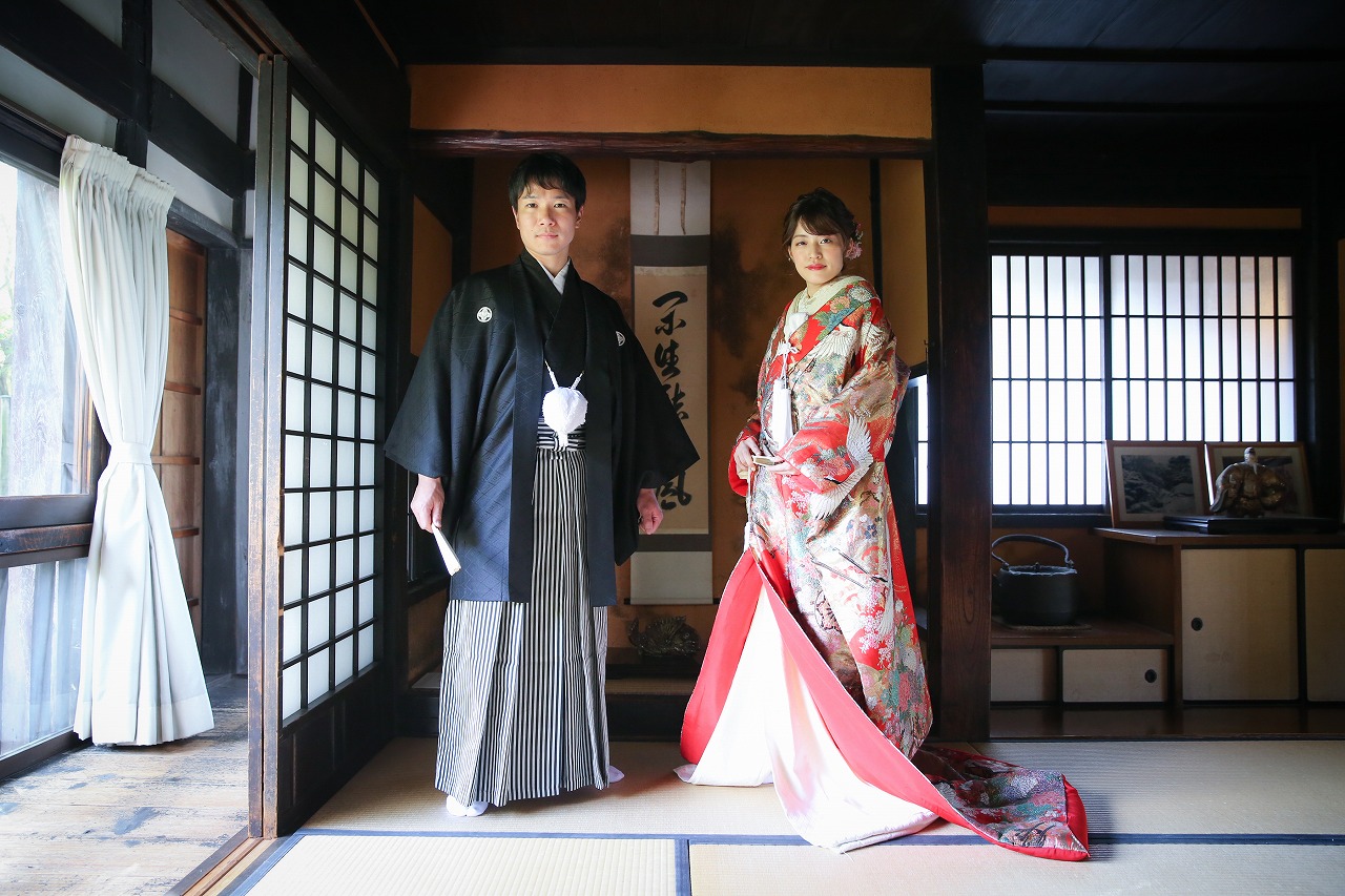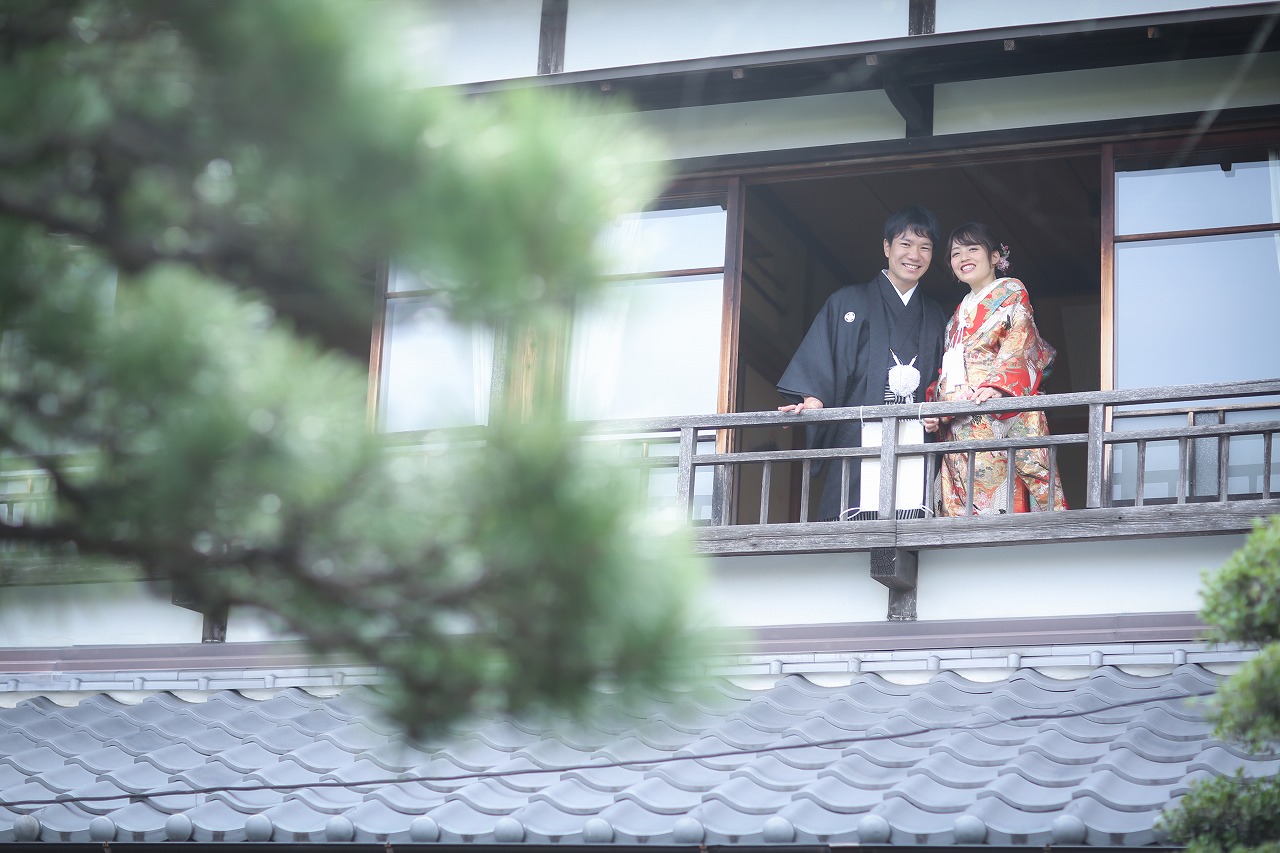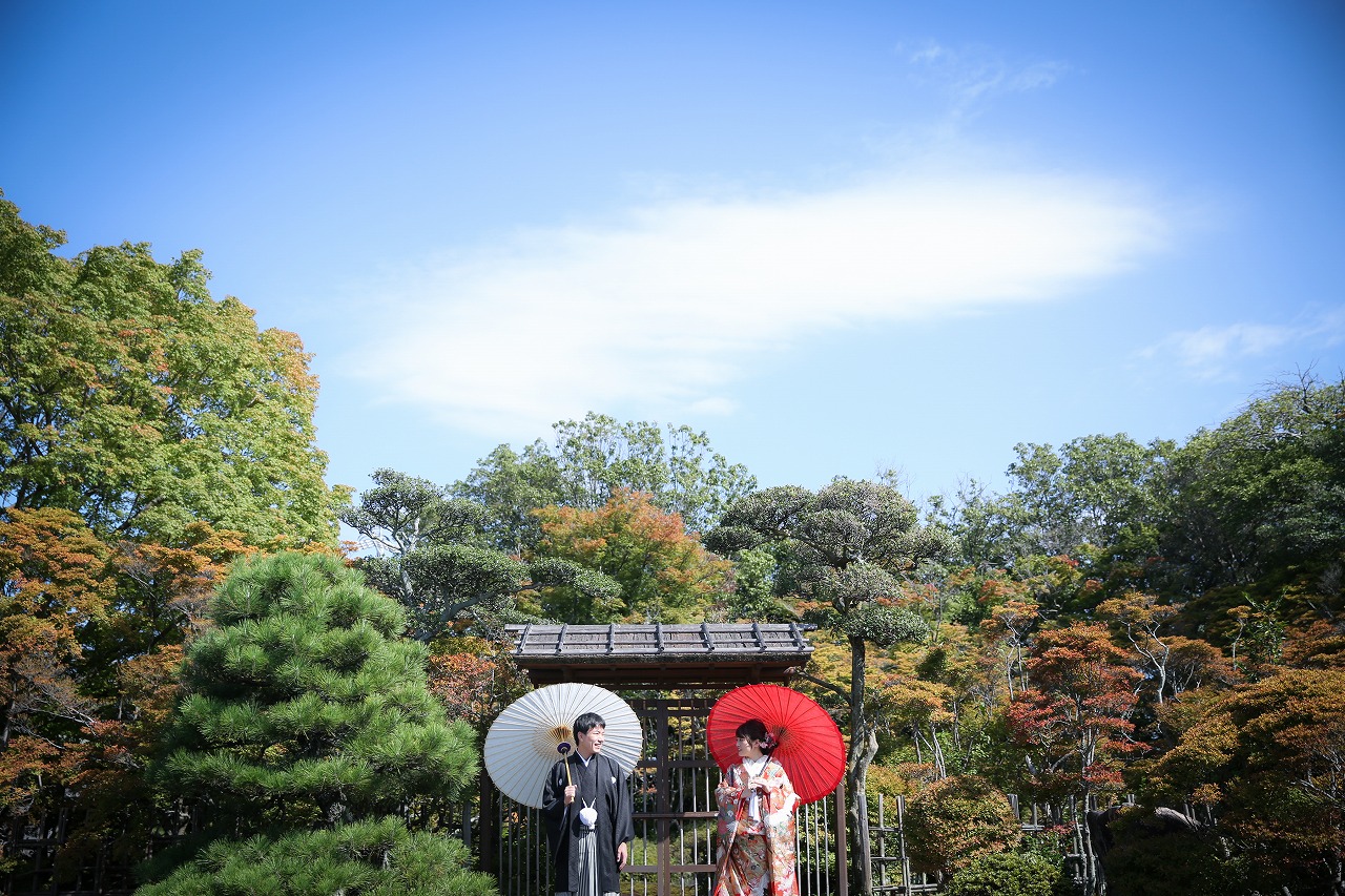 秋の爽やかな和装ロケーション撮影でした!笑顔がとても素敵なご新郎新婦様です。