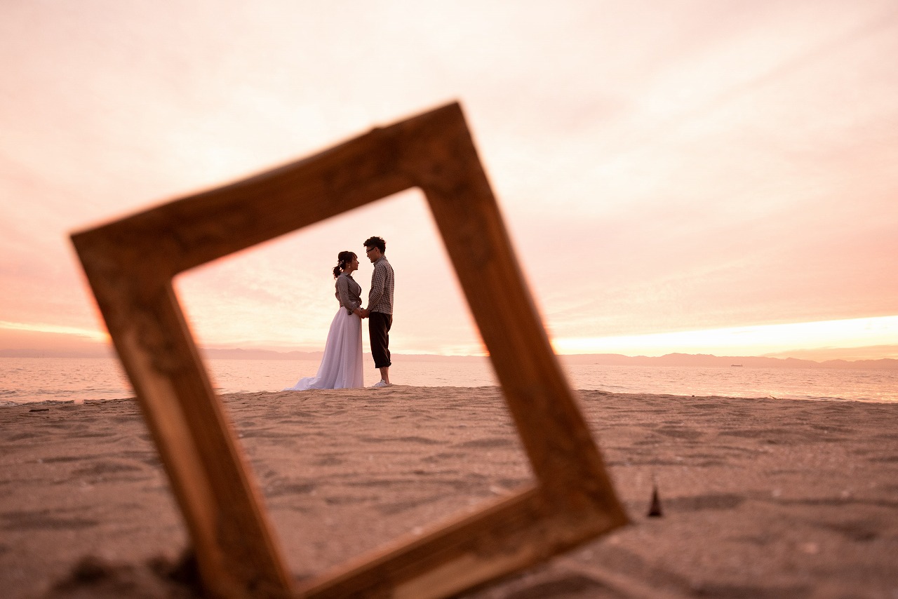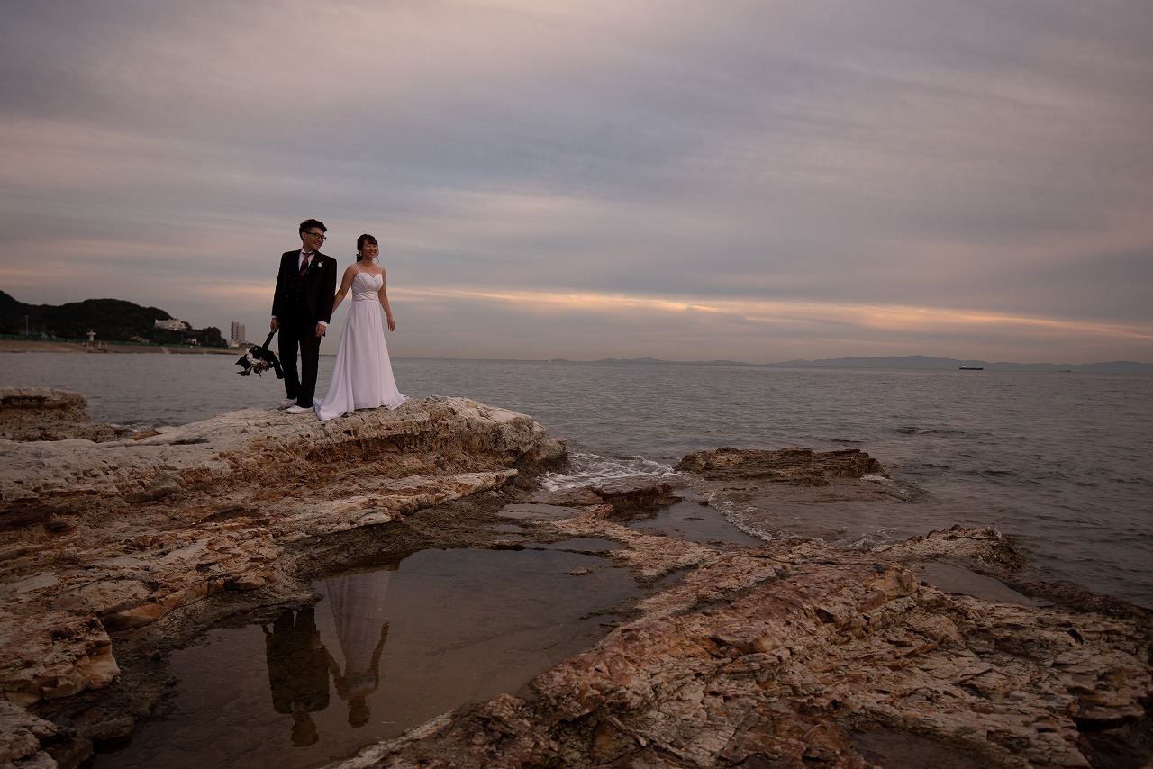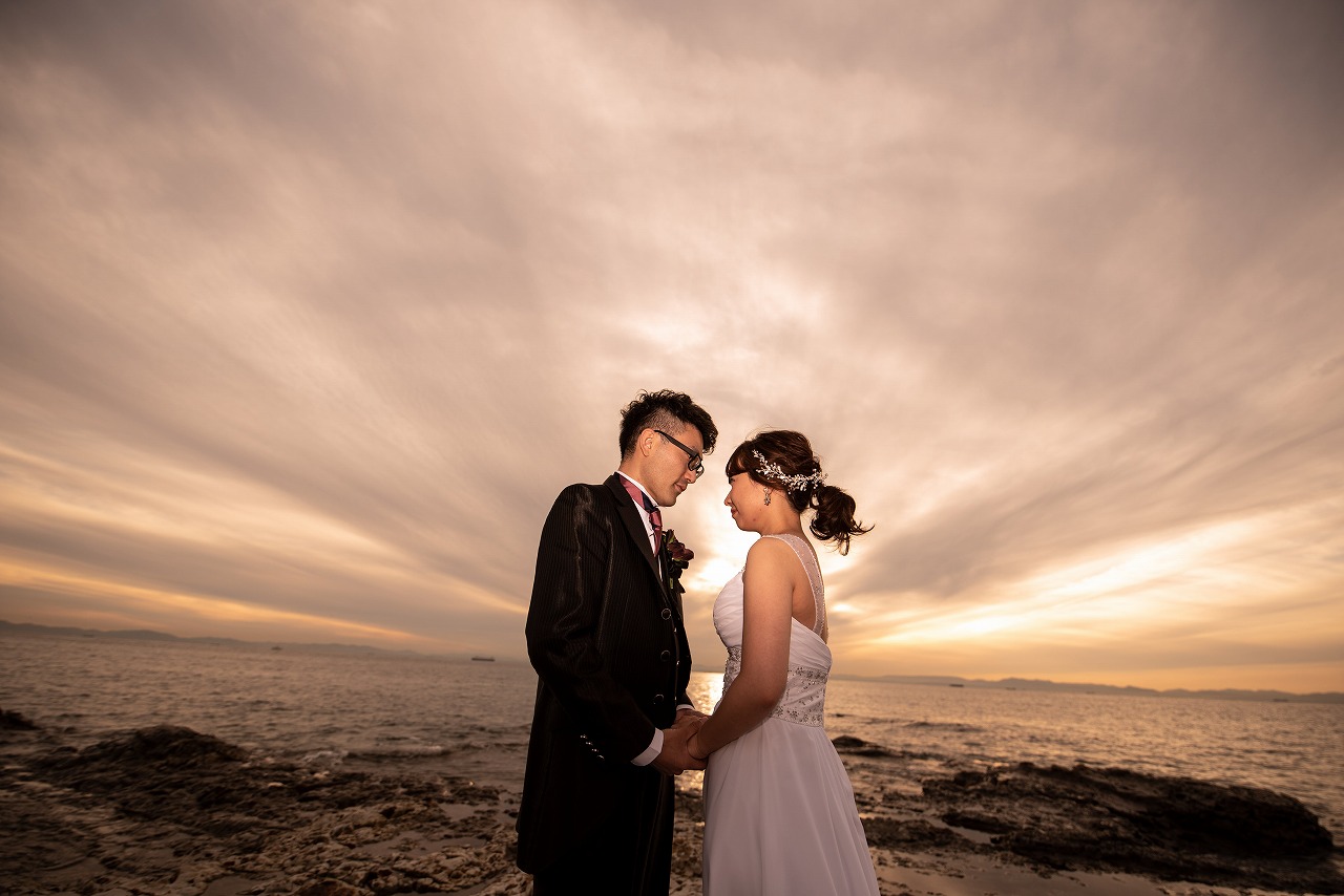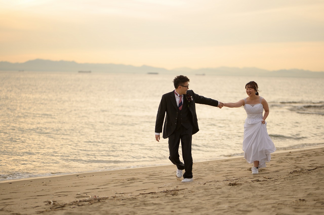 大自然を背景に、ダイナミックなビーチウェディングフォトin内海♥
