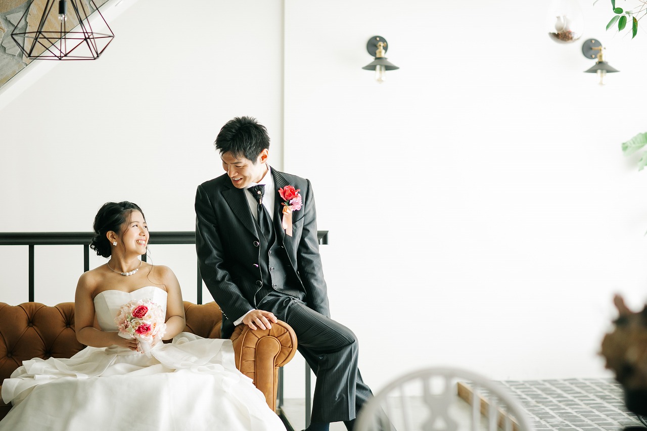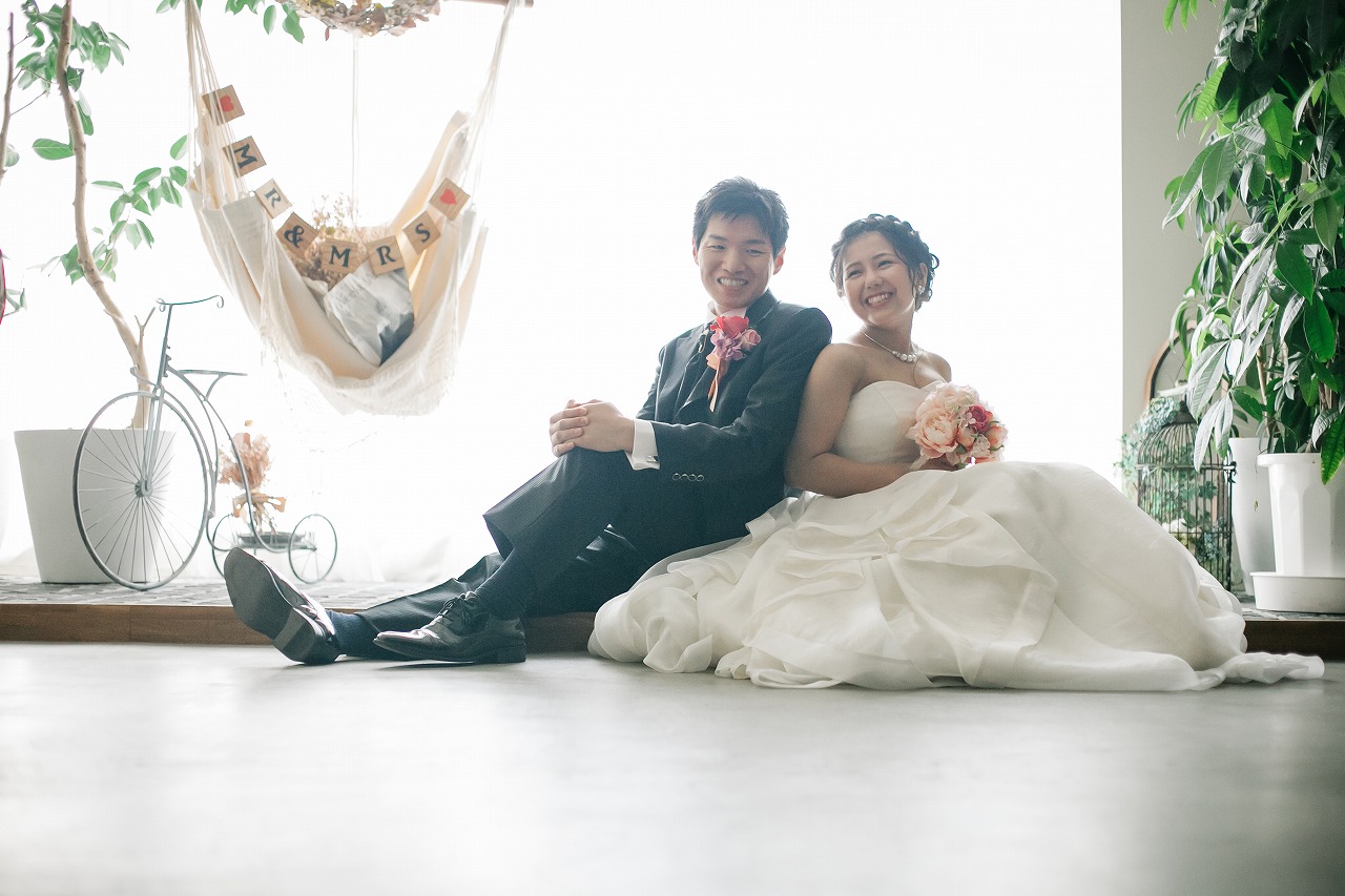オシャレなスタジオでウェディングドレスで前撮り撮影!