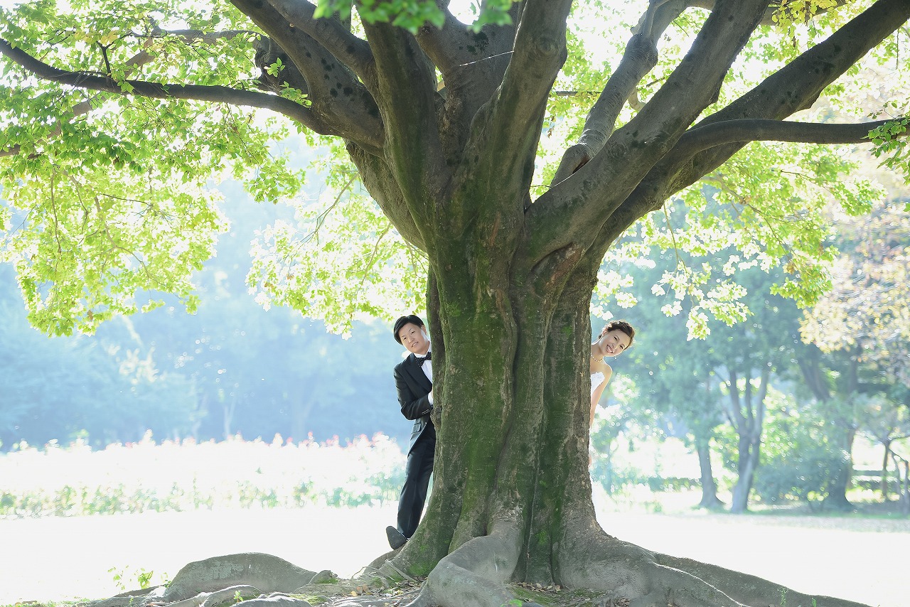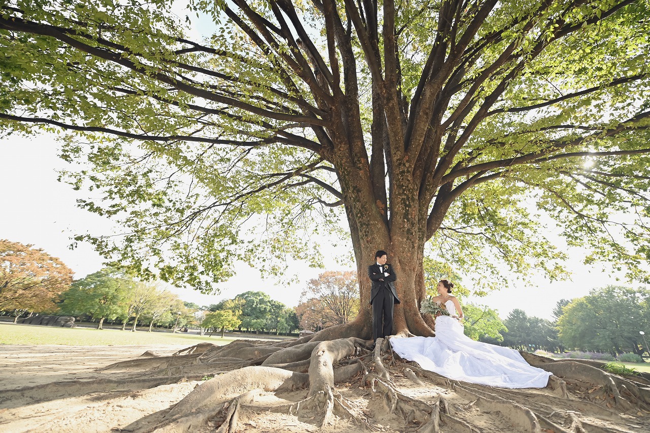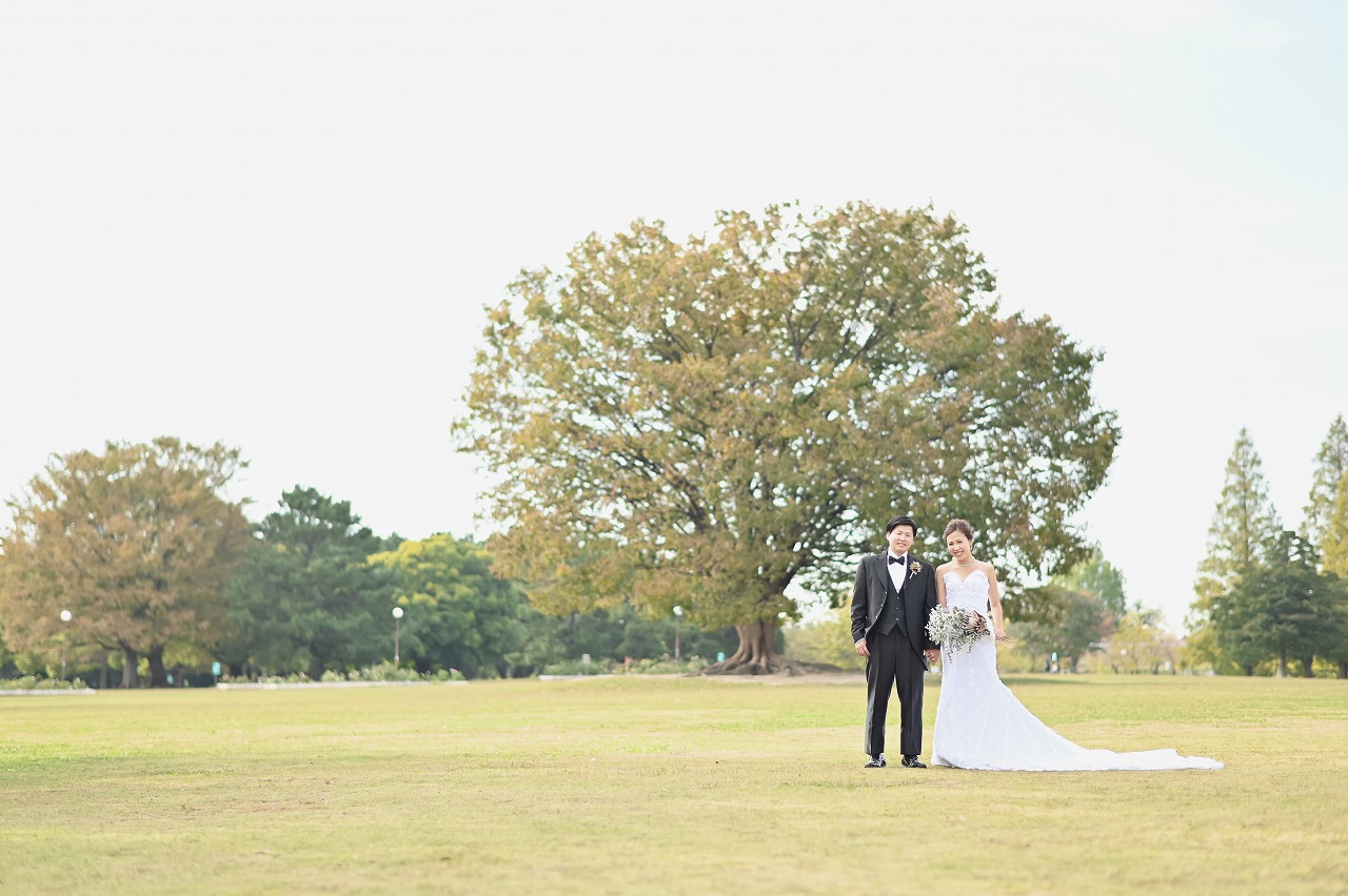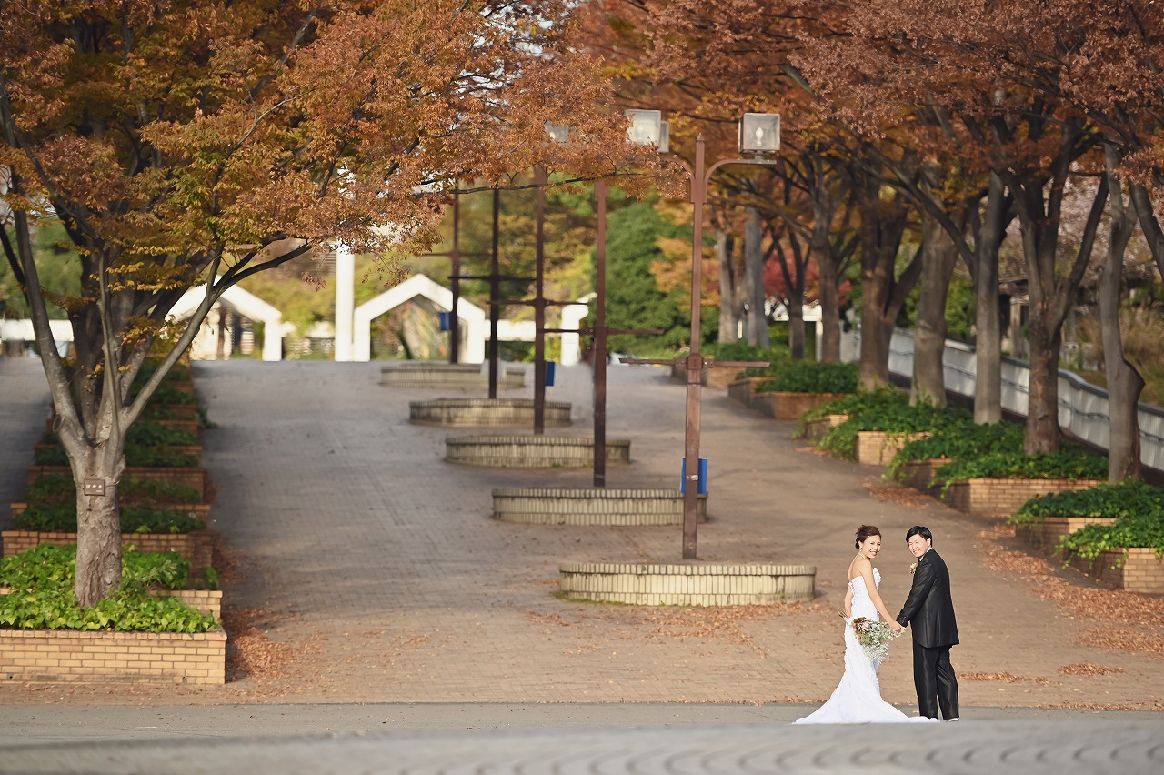 秋の庄内緑地公園で最高にオシャレなウェディングフォト!
