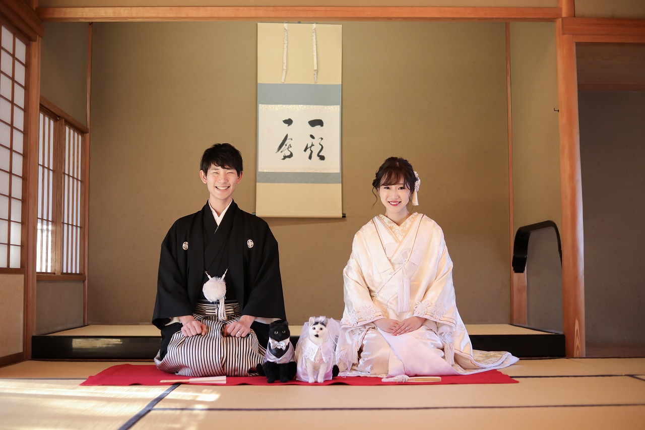 華やかな白無垢で、贅沢にお写真撮影をお楽しみいただきました!笑顔がとっても可愛らしいご新郎新婦様!
