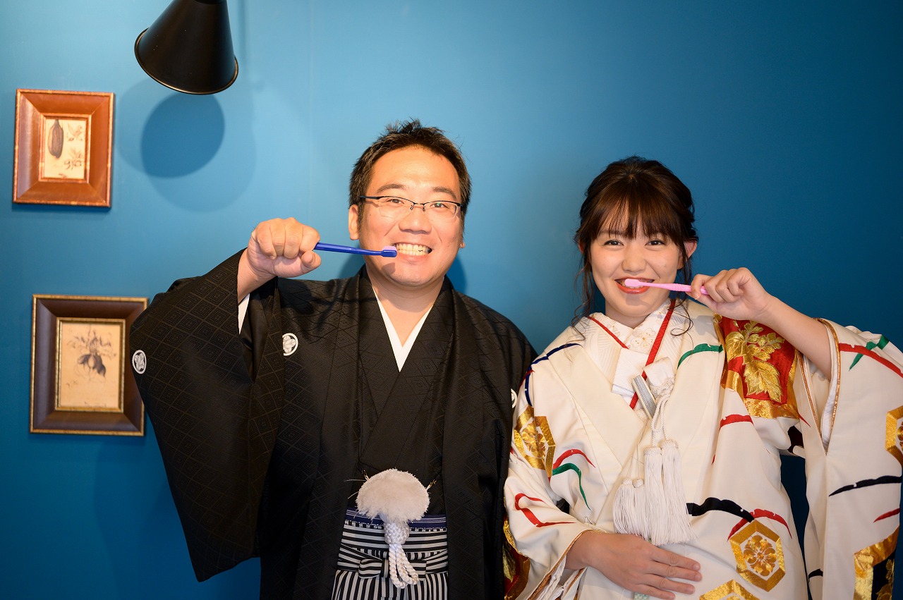 さらにお二人らしいお写真になりました!おそろいの歯ブラシを使った撮影はとってもキュート♥