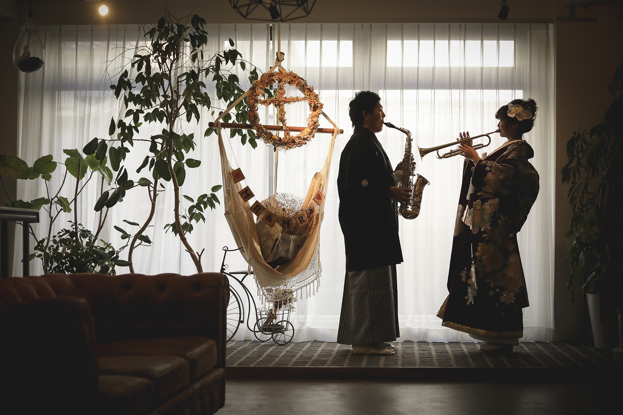 また、お二人の趣味でもある楽器を使った撮影で