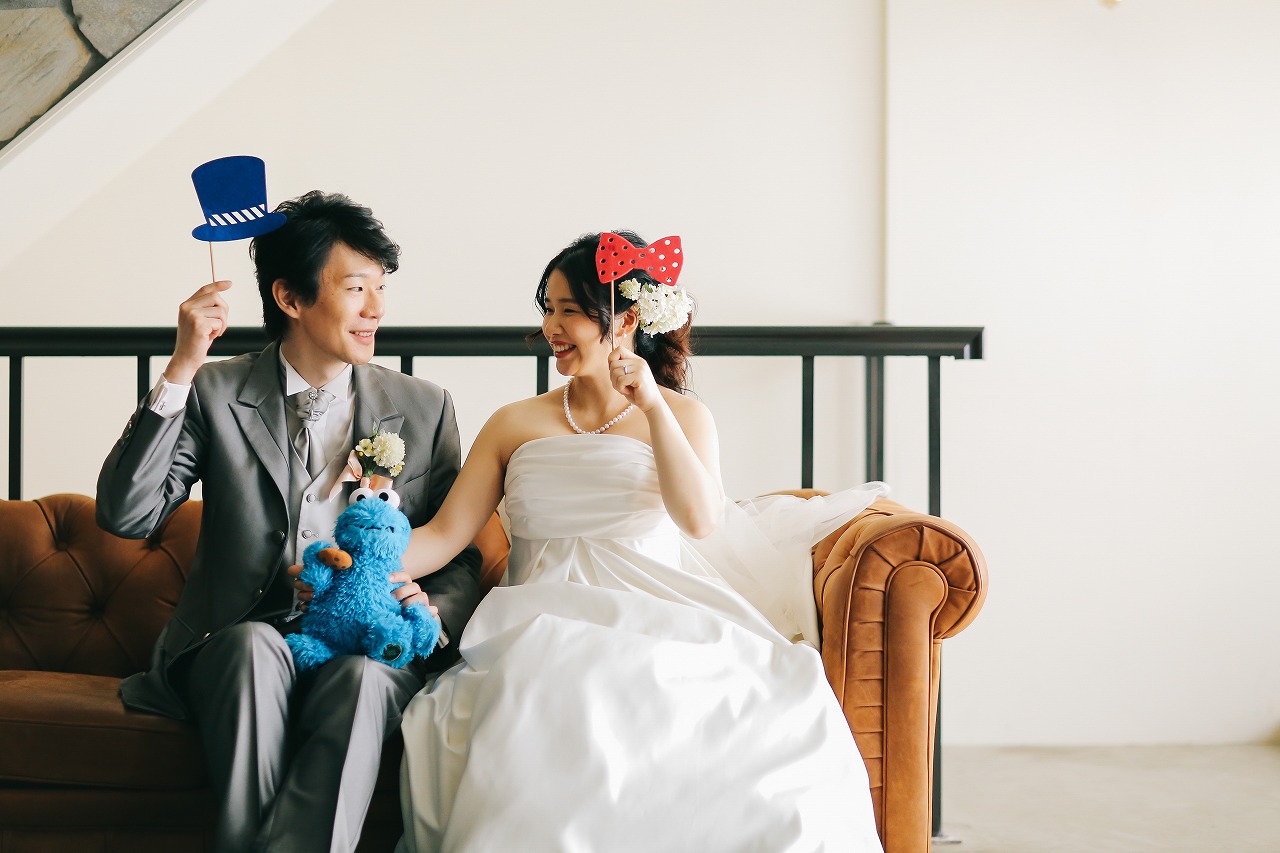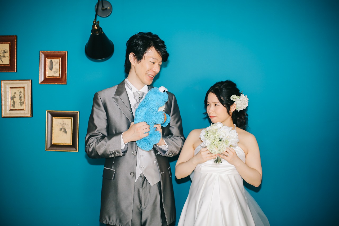 お二人が大好きなキャラクターのぬいぐるみを使った撮影