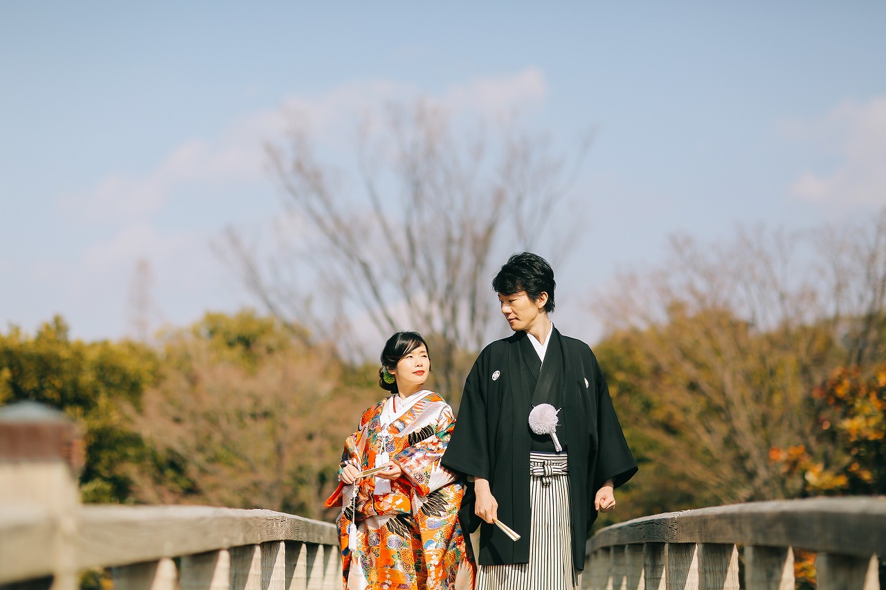 太陽の下、爽やかな和装ロケーション前撮り撮影を楽しもう。