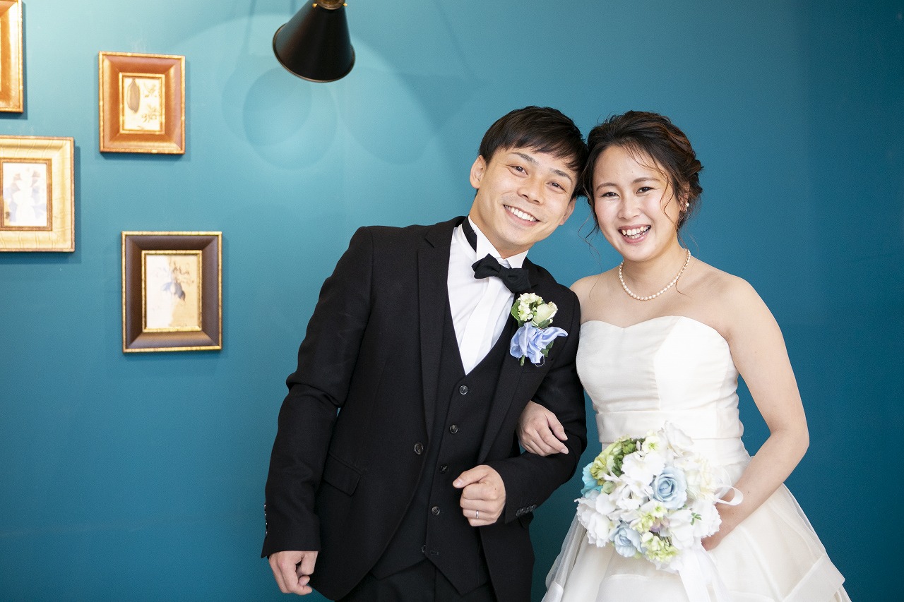 見学しに行ったら青い壁が綺麗だったのでスタジオ撮影でやろう!となりました。- Point ザ・スカイウェディングで撮影されたご感想や、良かった点を教えてください。