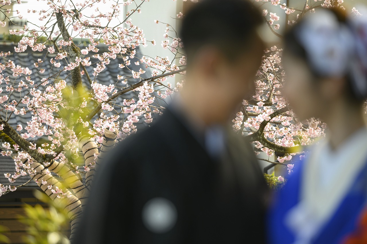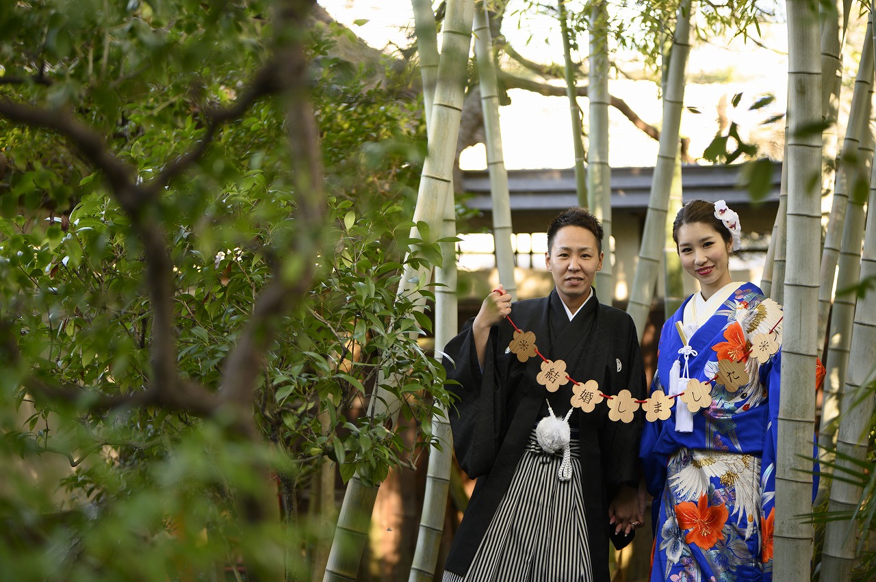 春を感じる素敵な和装前撮り撮影になりましたね!緑の中に、良く映える、爽やかな打掛が