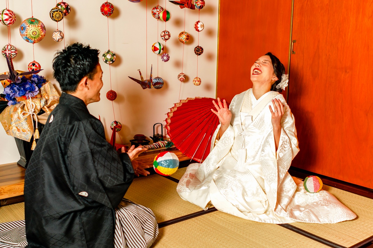 紙風船を使った撮影や、お二人お持ち込みの小物を