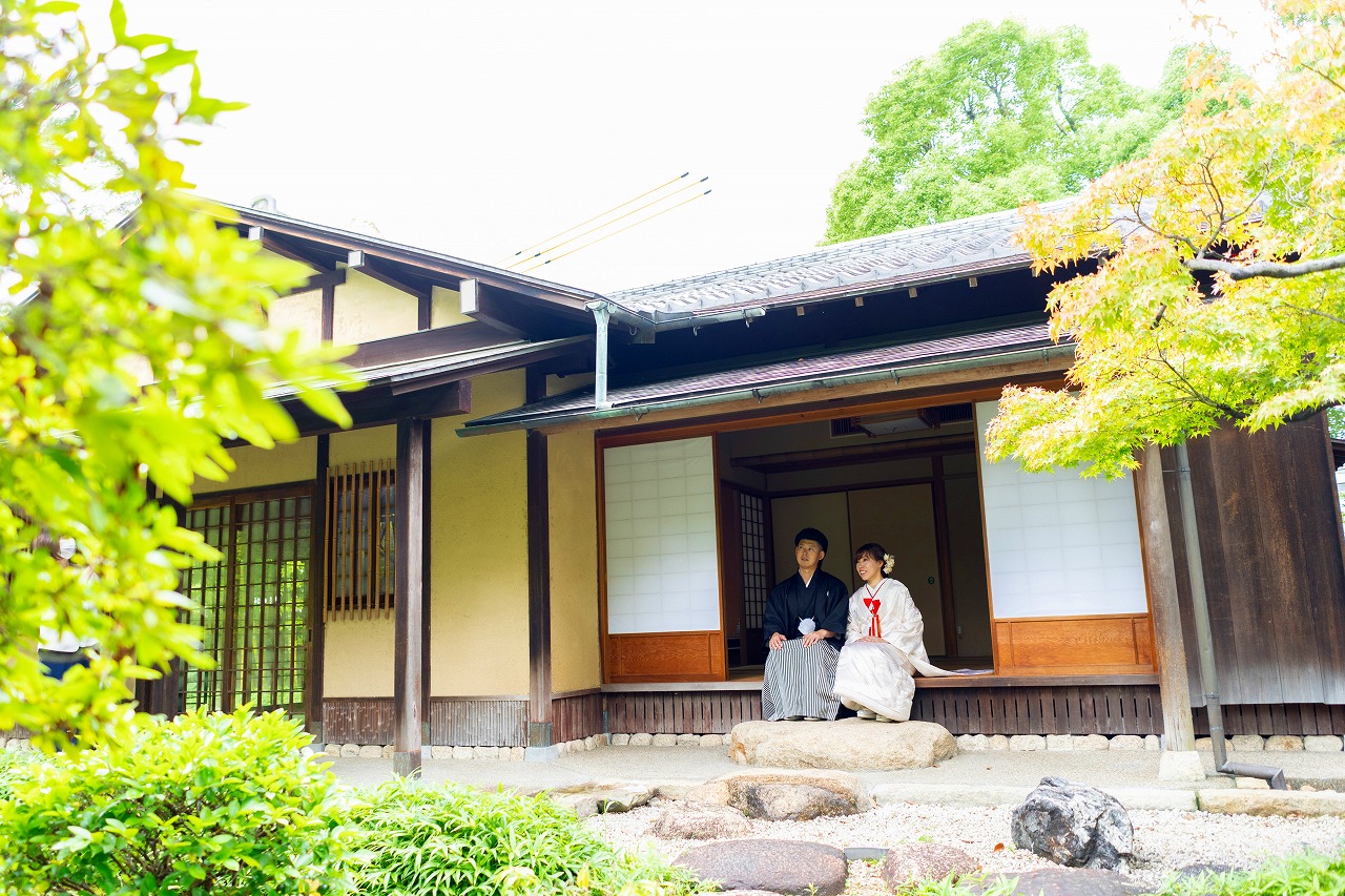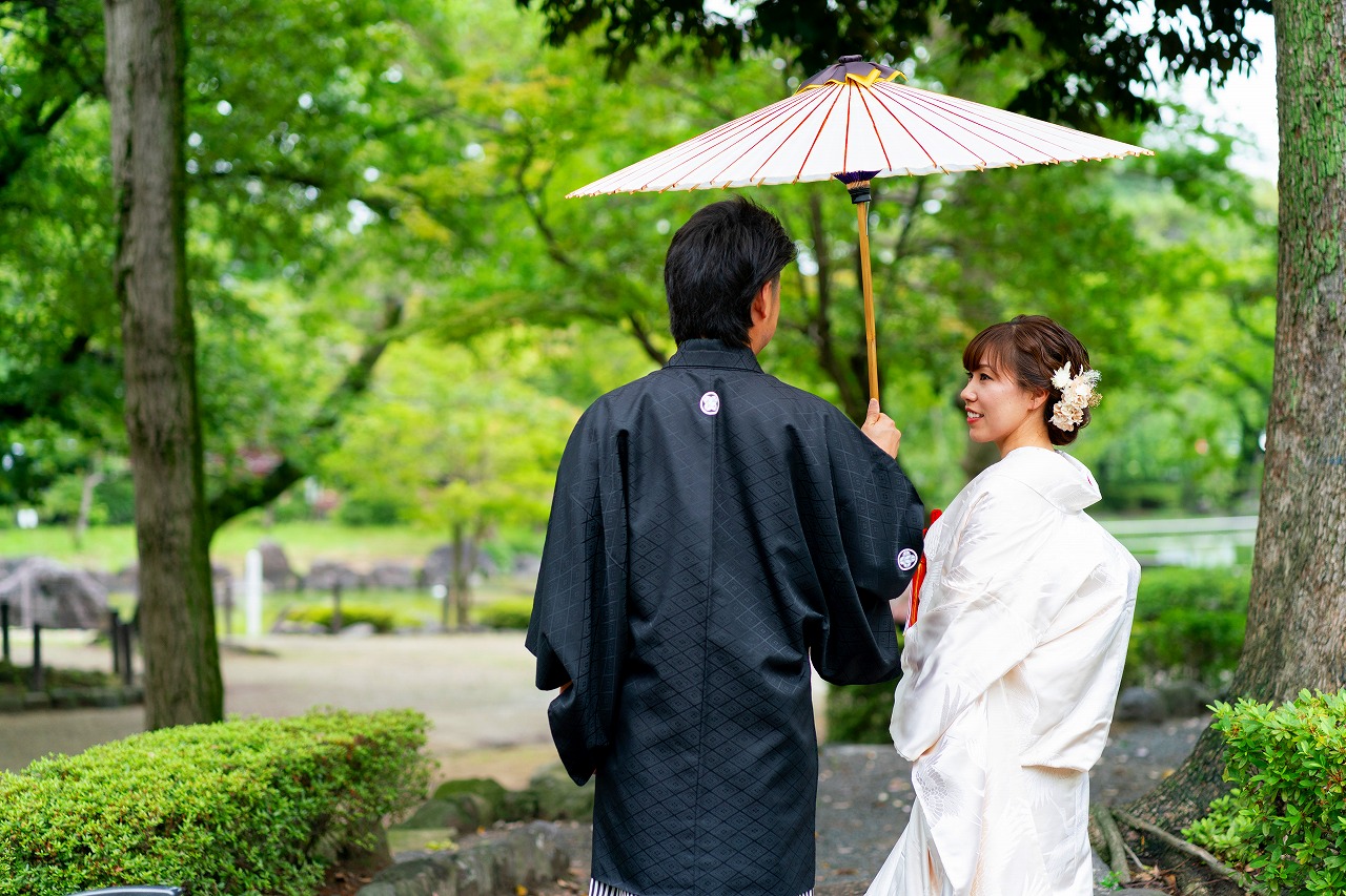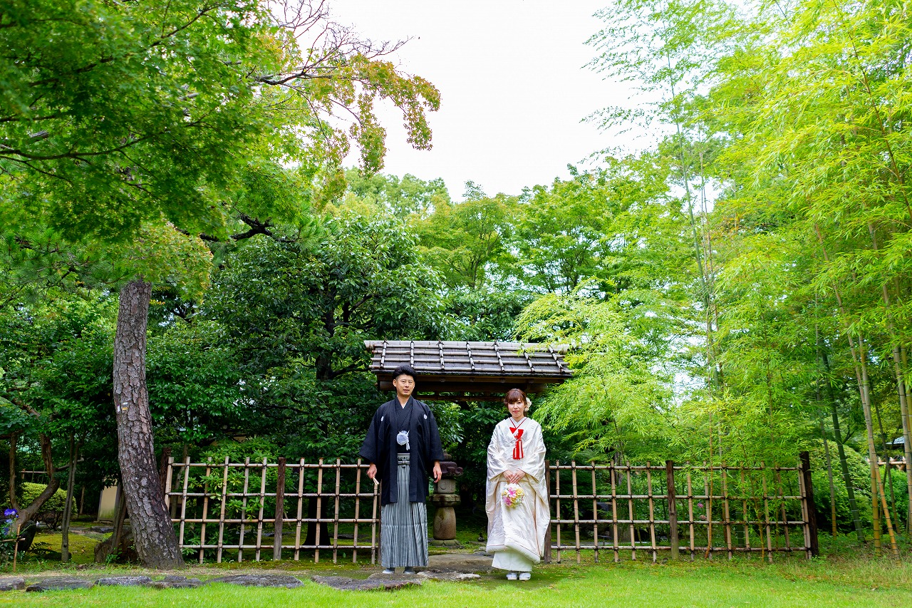 美しい緑に包まれて、爽やかな和装前撮り撮影を中村公園で。