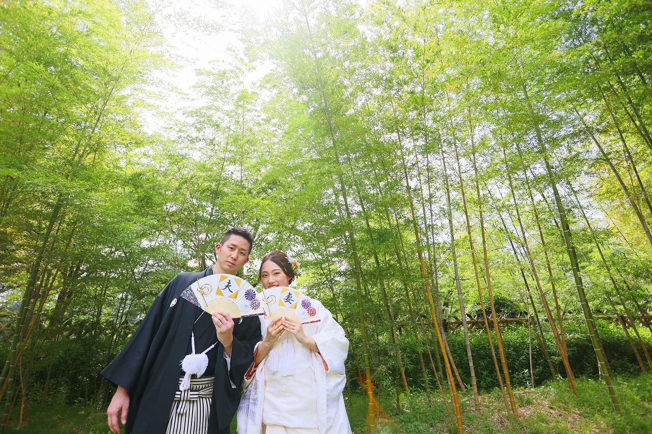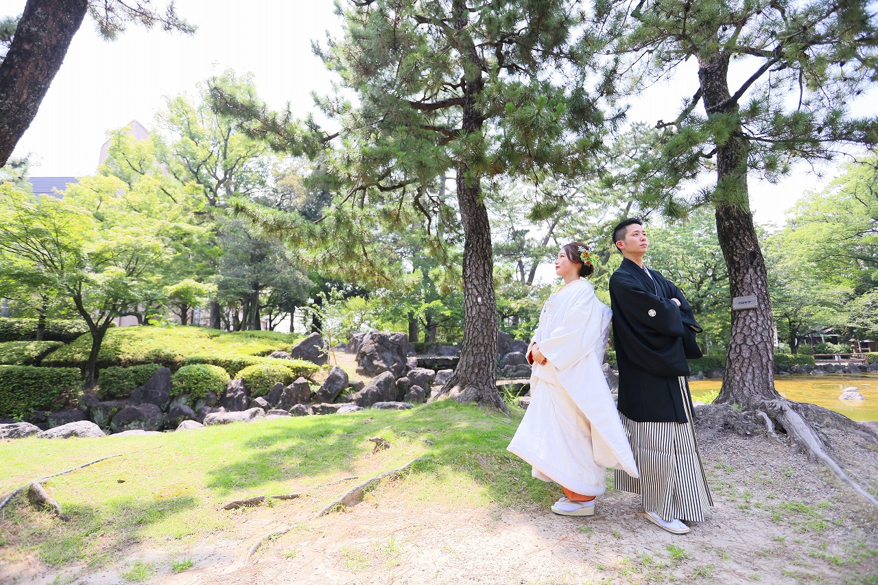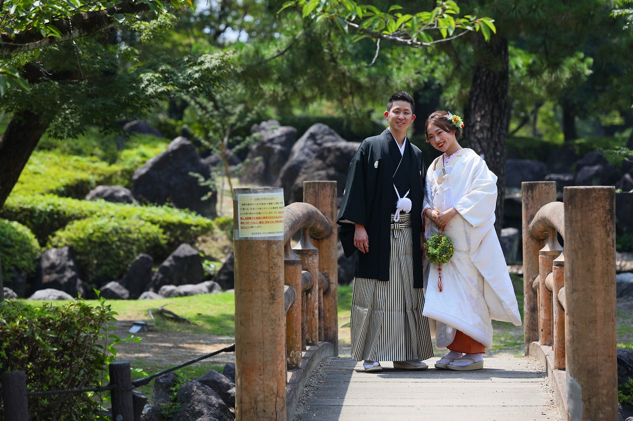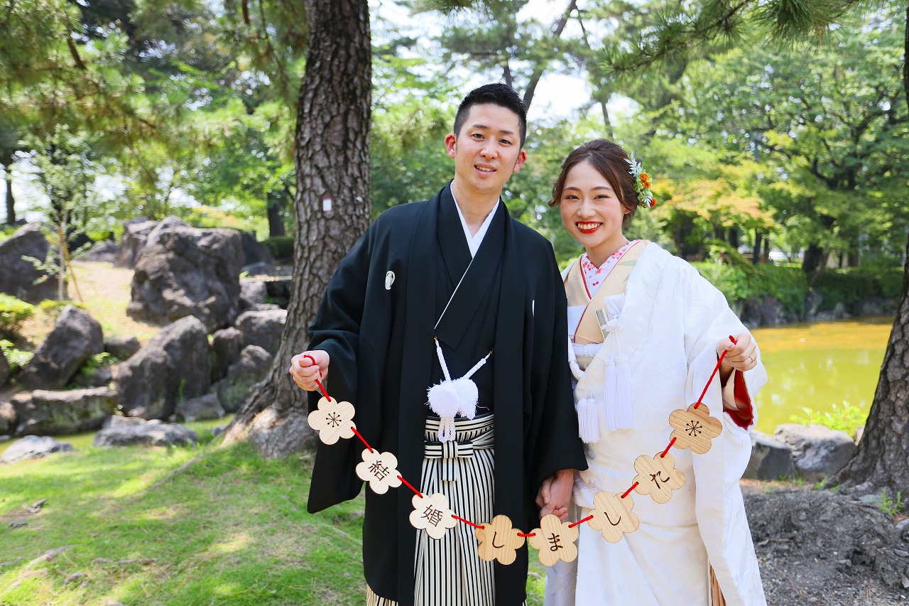 ご新郎様の黒の紋付もかっこよく決まっていますね!!また、当初は桜での撮影がご希望でしたがコロナで延期になってしまいましたが