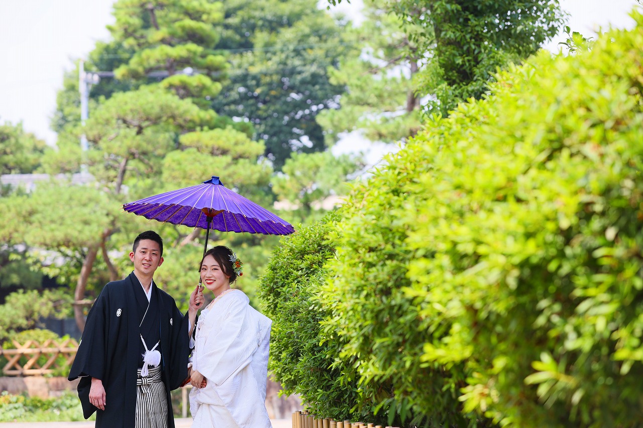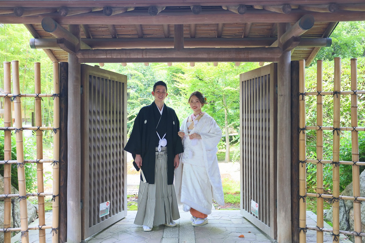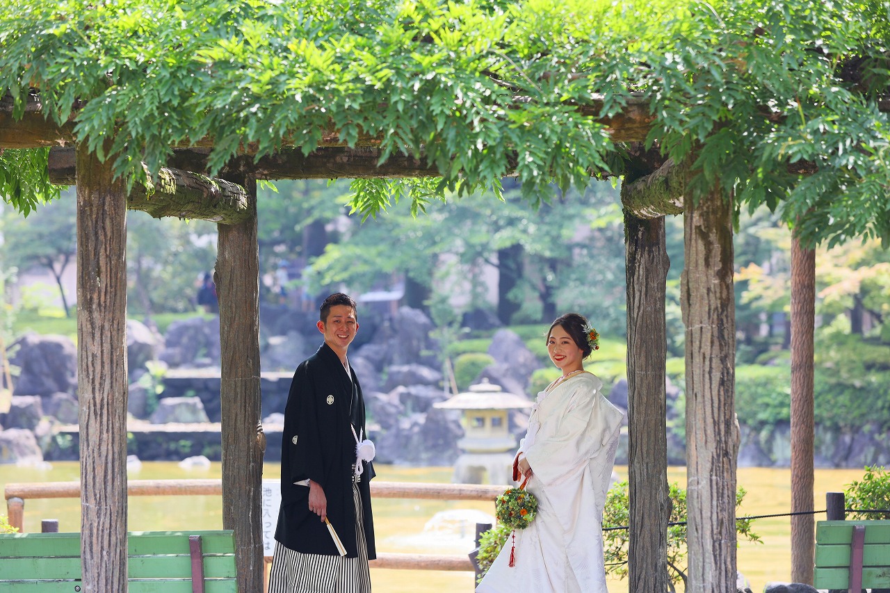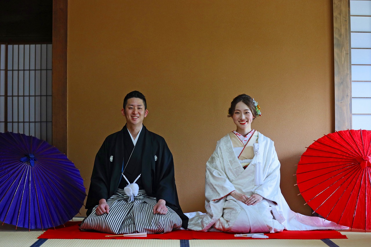 ご新郎様の黒の紋付もかっこよく決まっていますね!!また、当初は桜での撮影がご希望でしたがコロナで延期になってしまいましたが