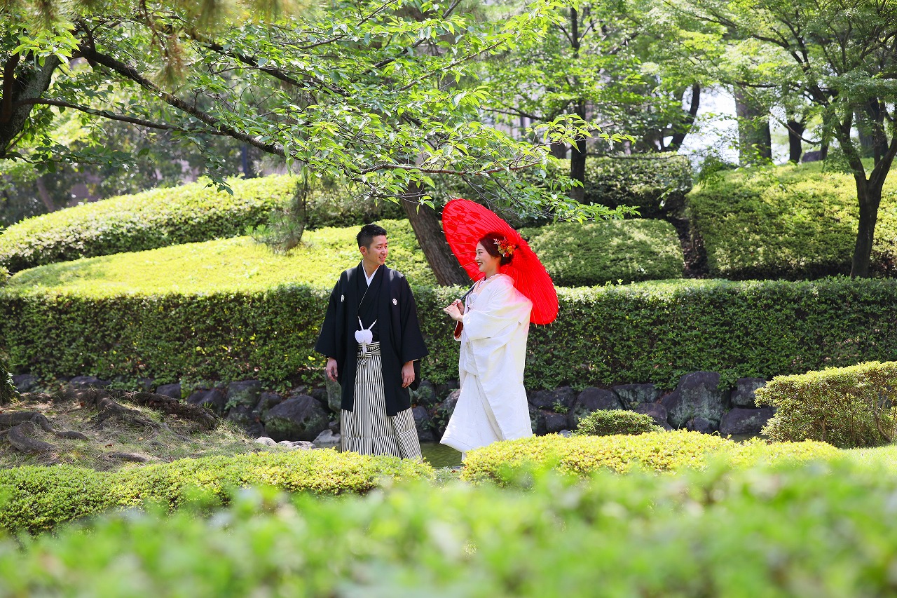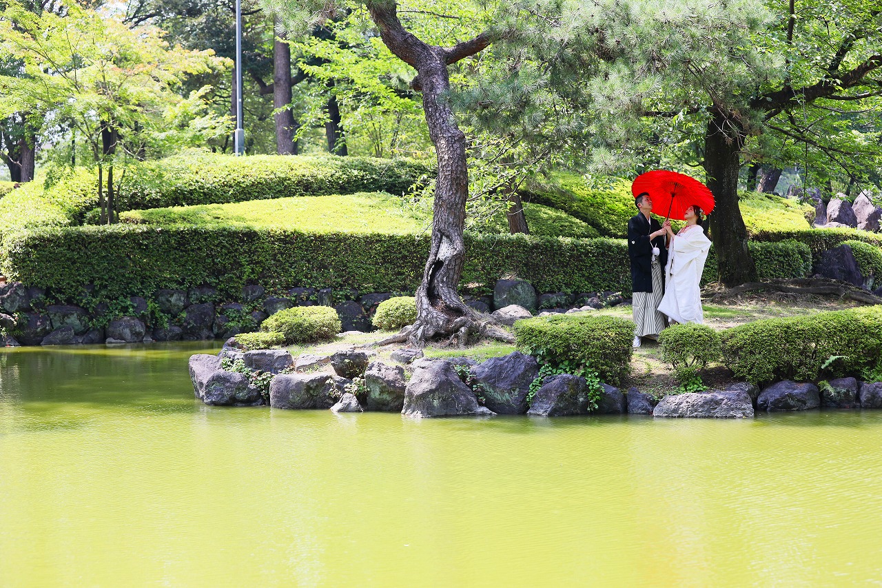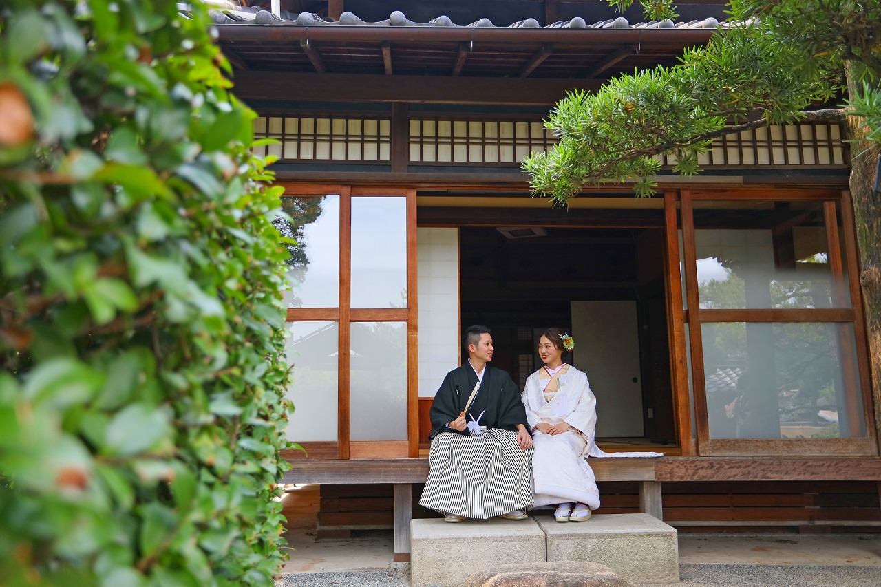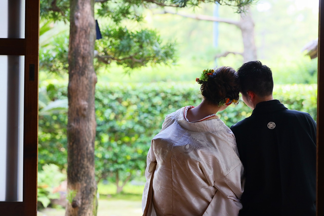 ご新郎様の黒の紋付もかっこよく決まっていますね!!また、当初は桜での撮影がご希望でしたがコロナで延期になってしまいましたが