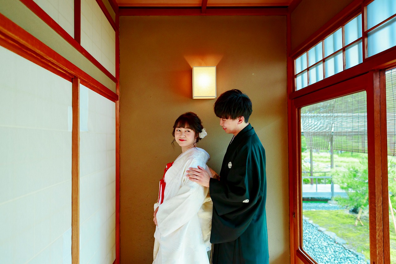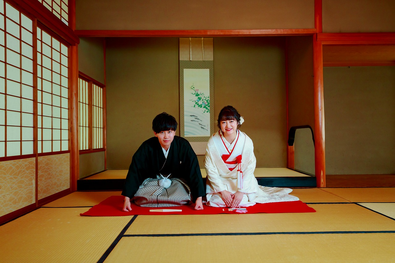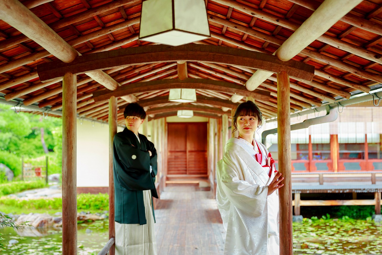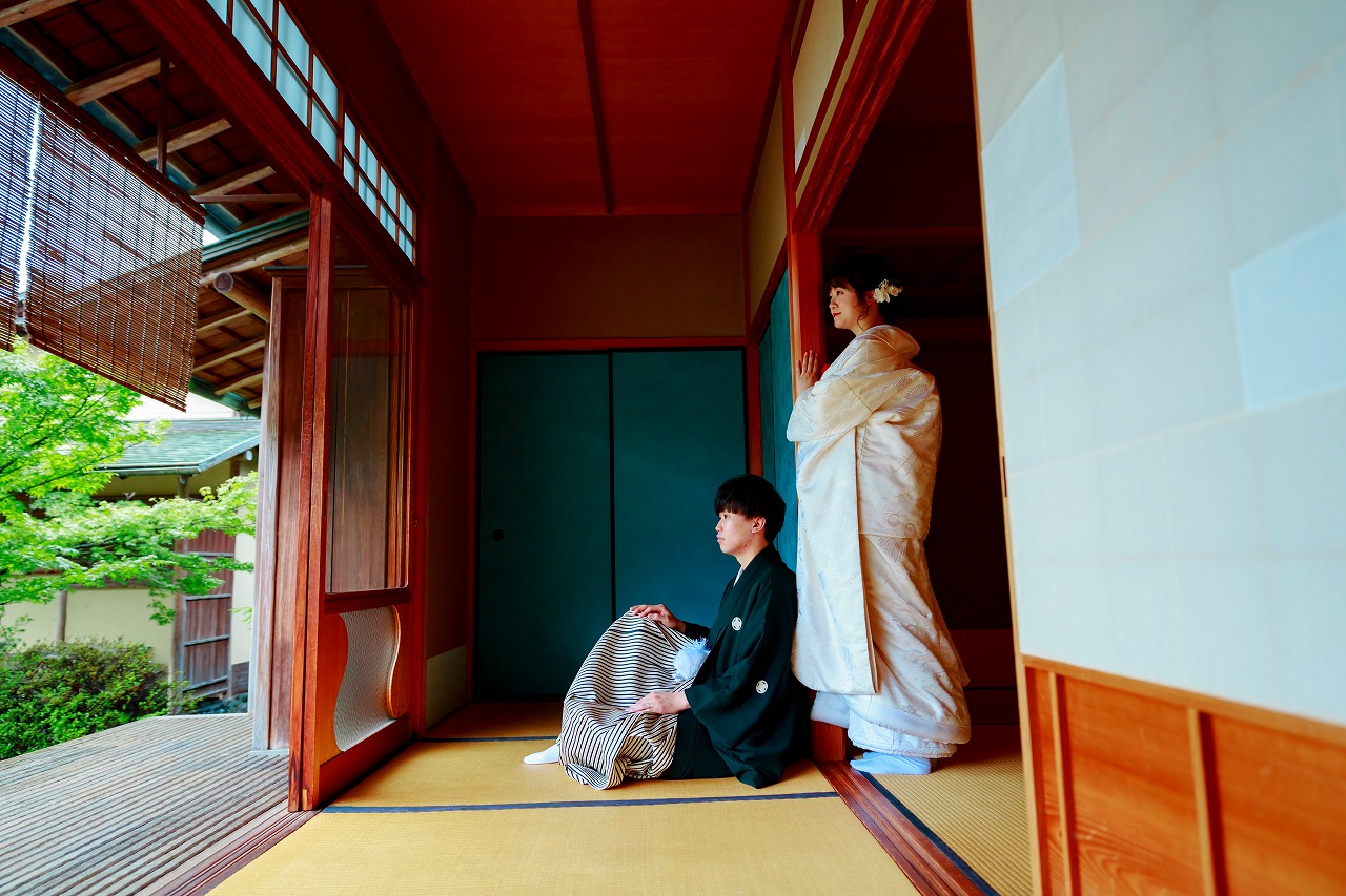 白無垢での爽やかな前撮り撮影をお楽しみいただきました。お茶室でのゆったりとした撮影や、
