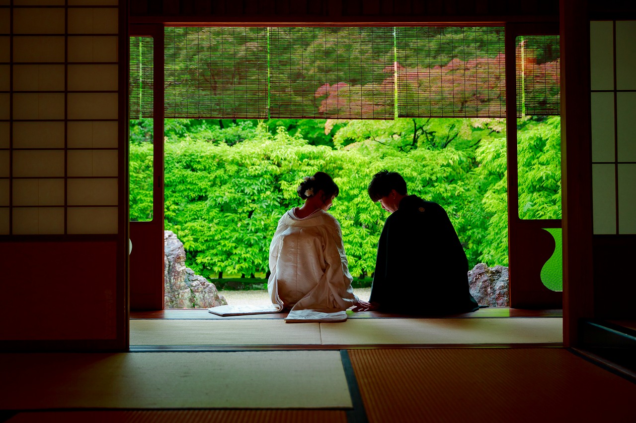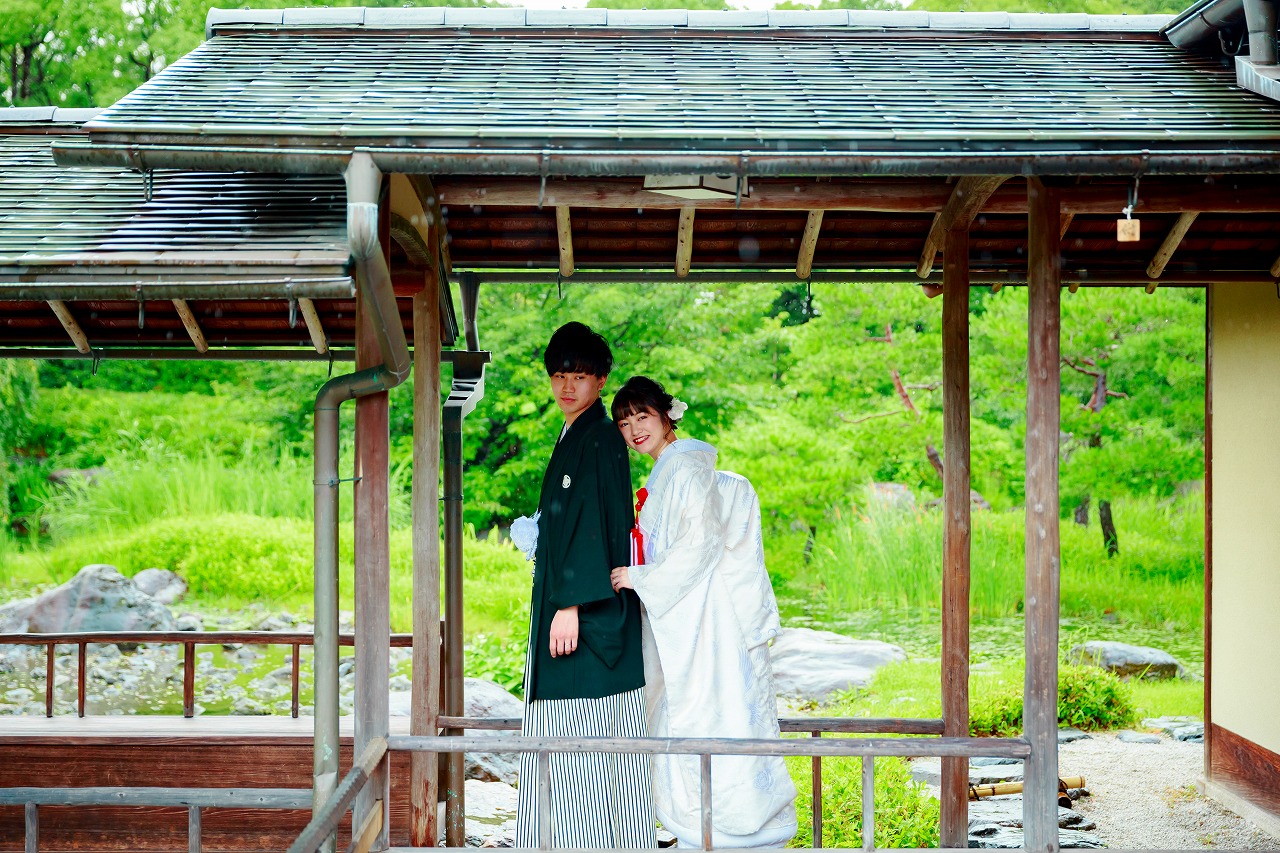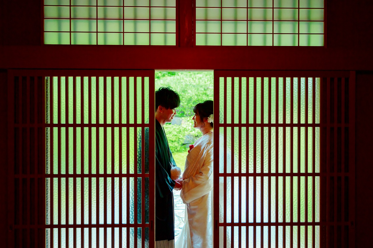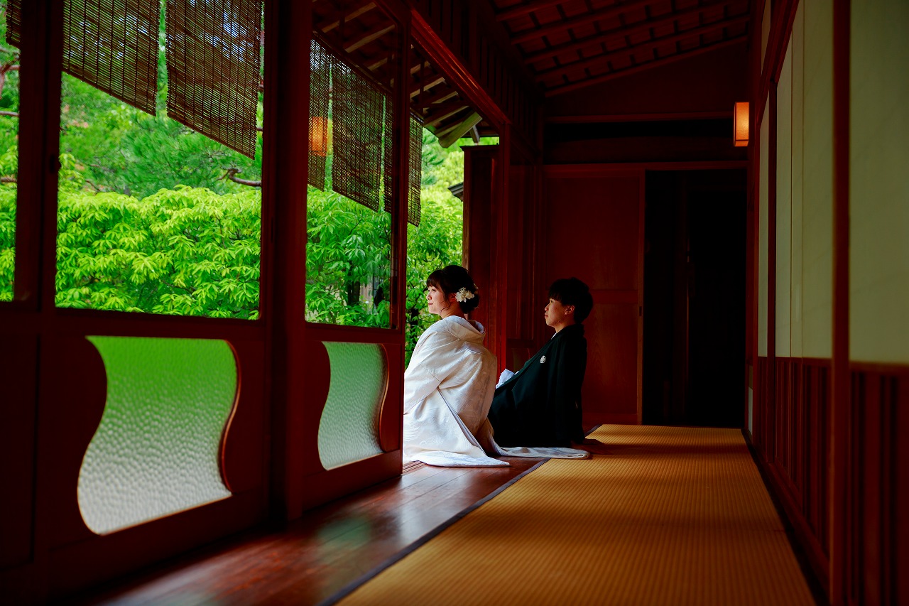 白無垢での爽やかな前撮り撮影をお楽しみいただきました。お茶室でのゆったりとした撮影や、