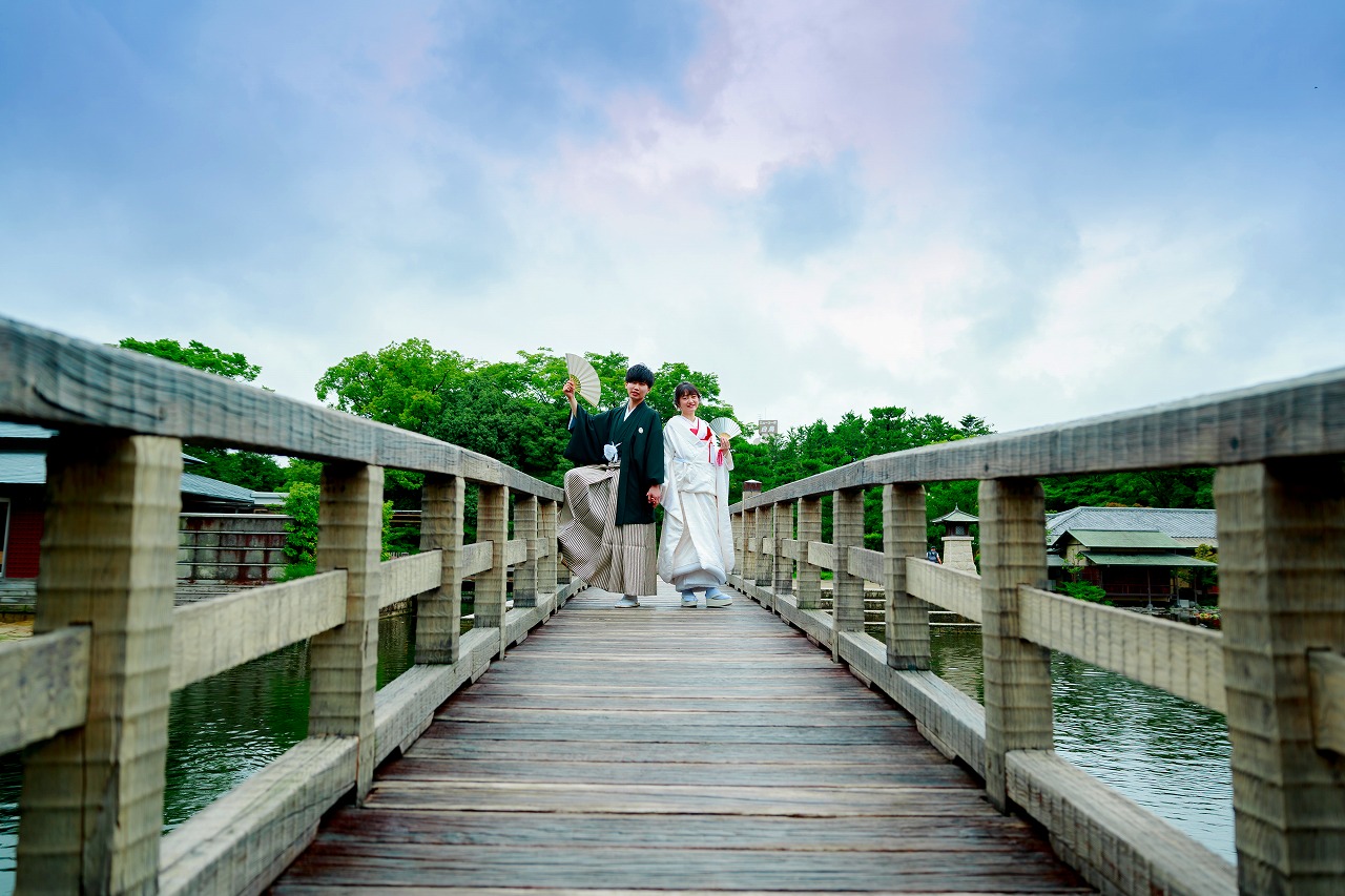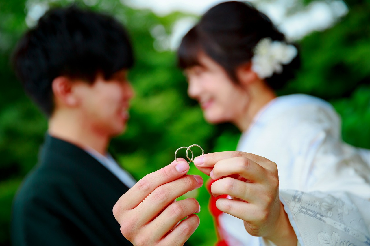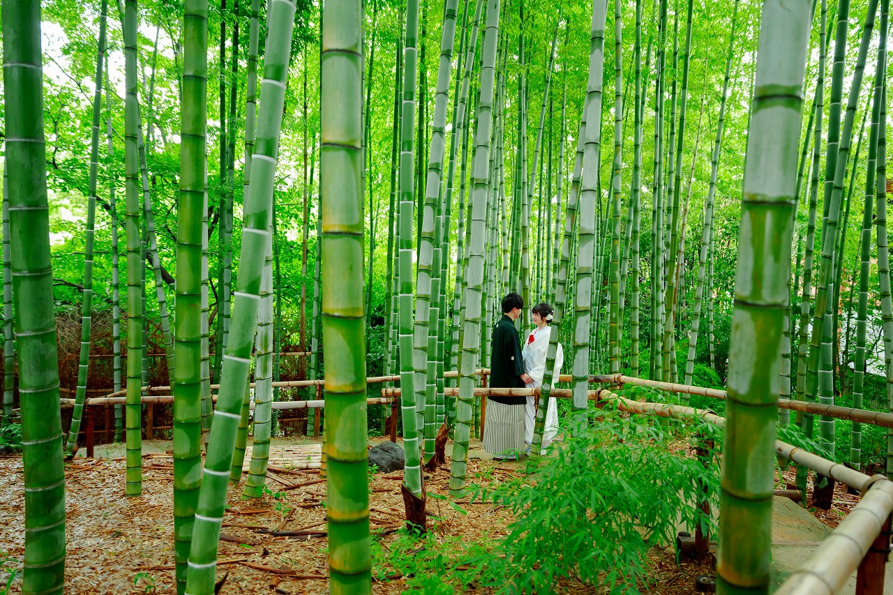 竹林に囲まれた幻想的でロマンチックな和装前撮り撮影。