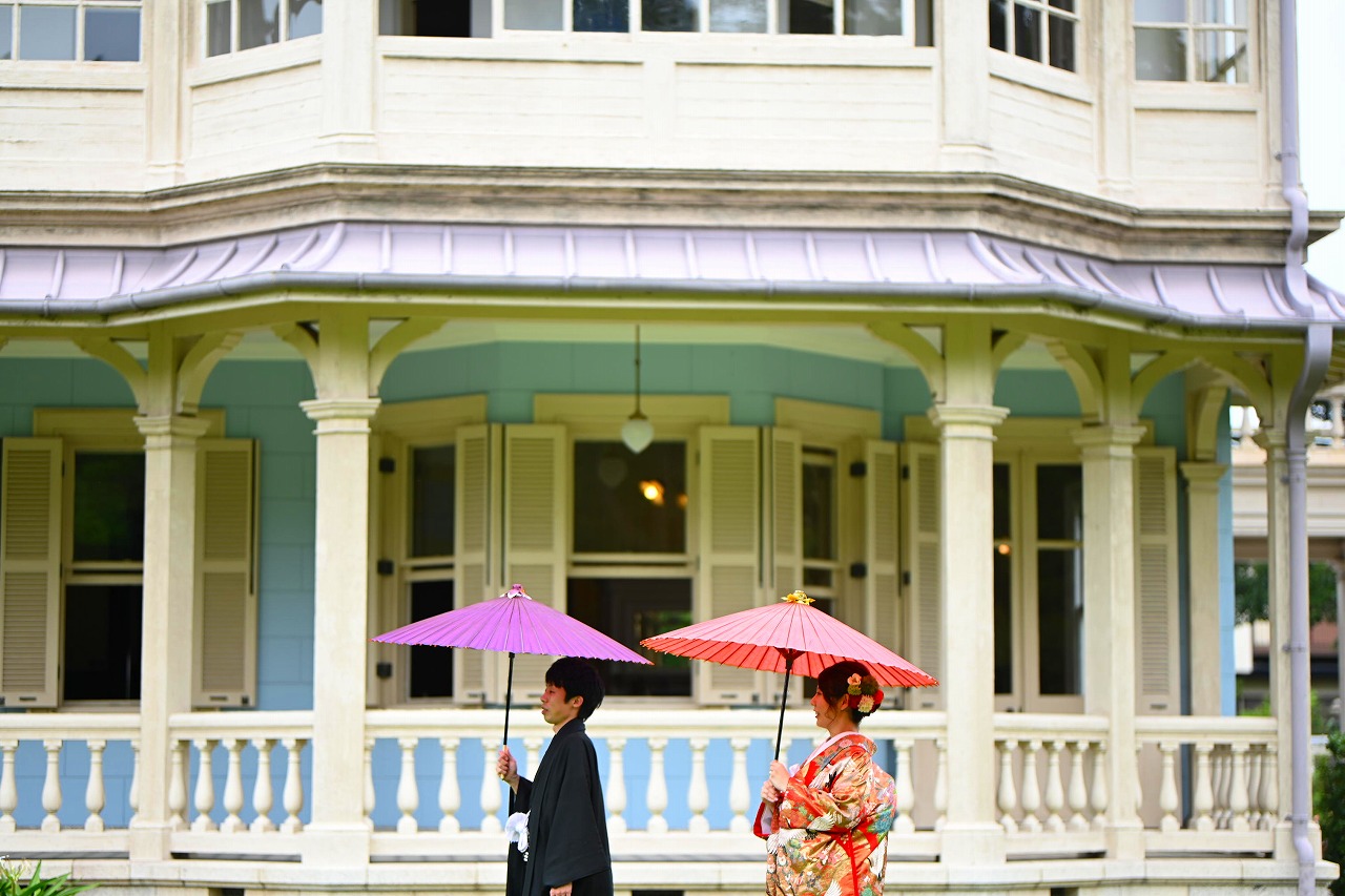 洋館&和館で贅沢に撮影をお楽しみいただきました。とってもオシャレなお二人。